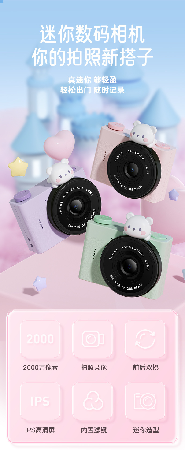 • [산호 분말 카메라] [8G 카드] 스티커 끈 충전 라인 화면 보호기