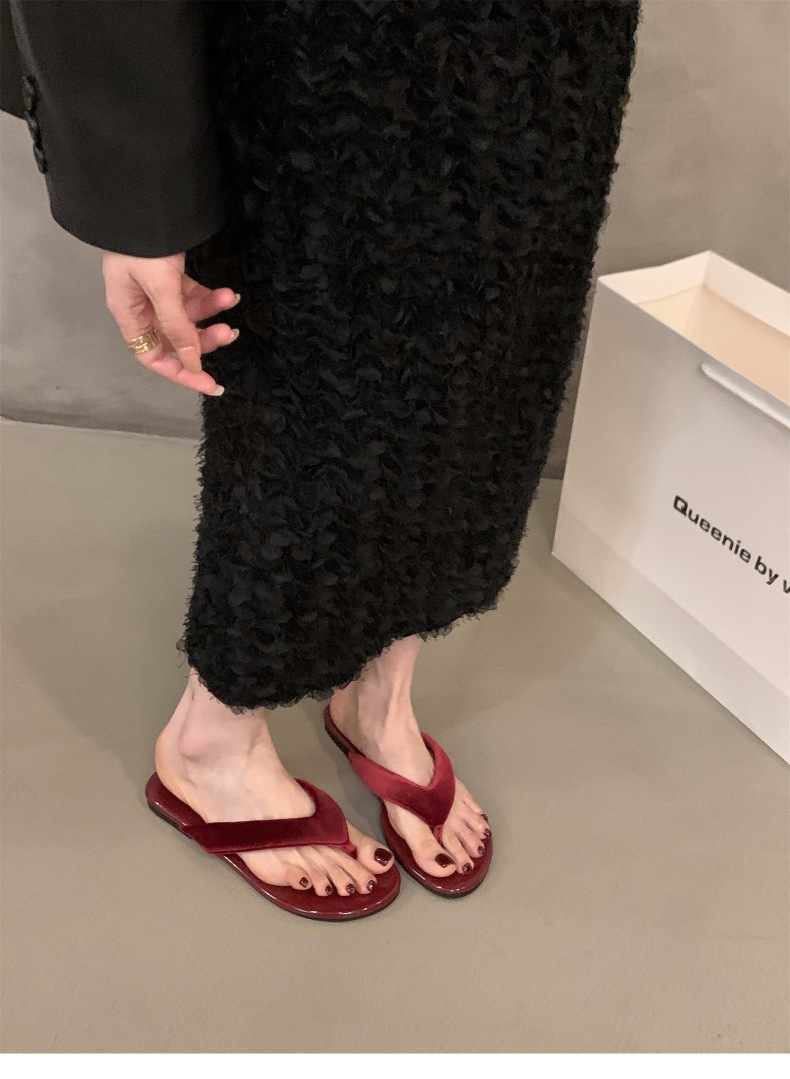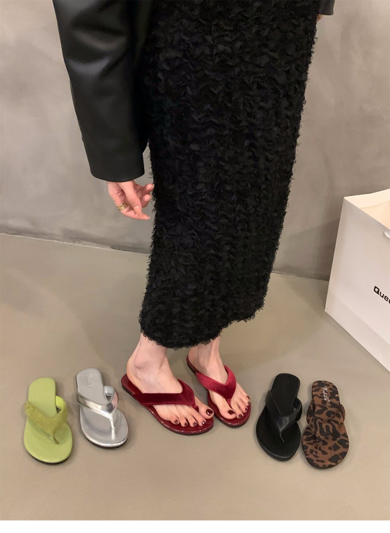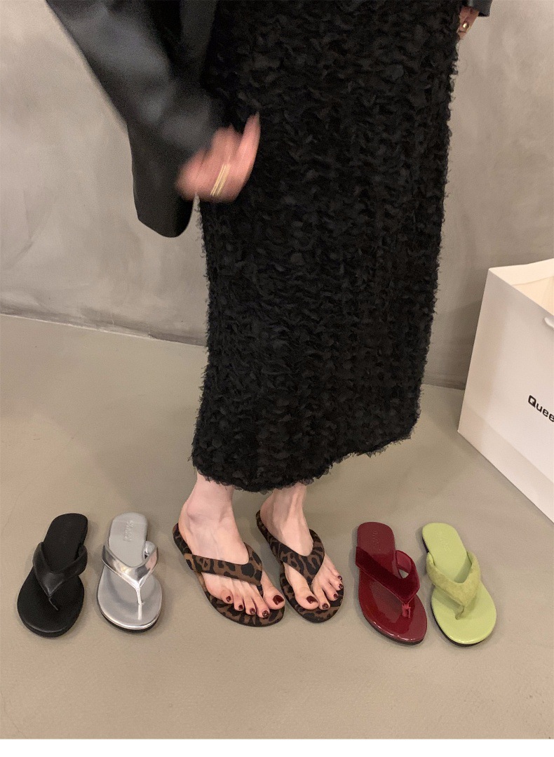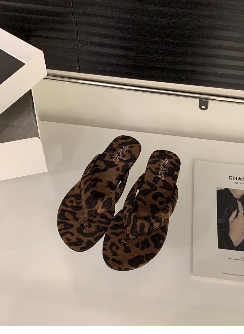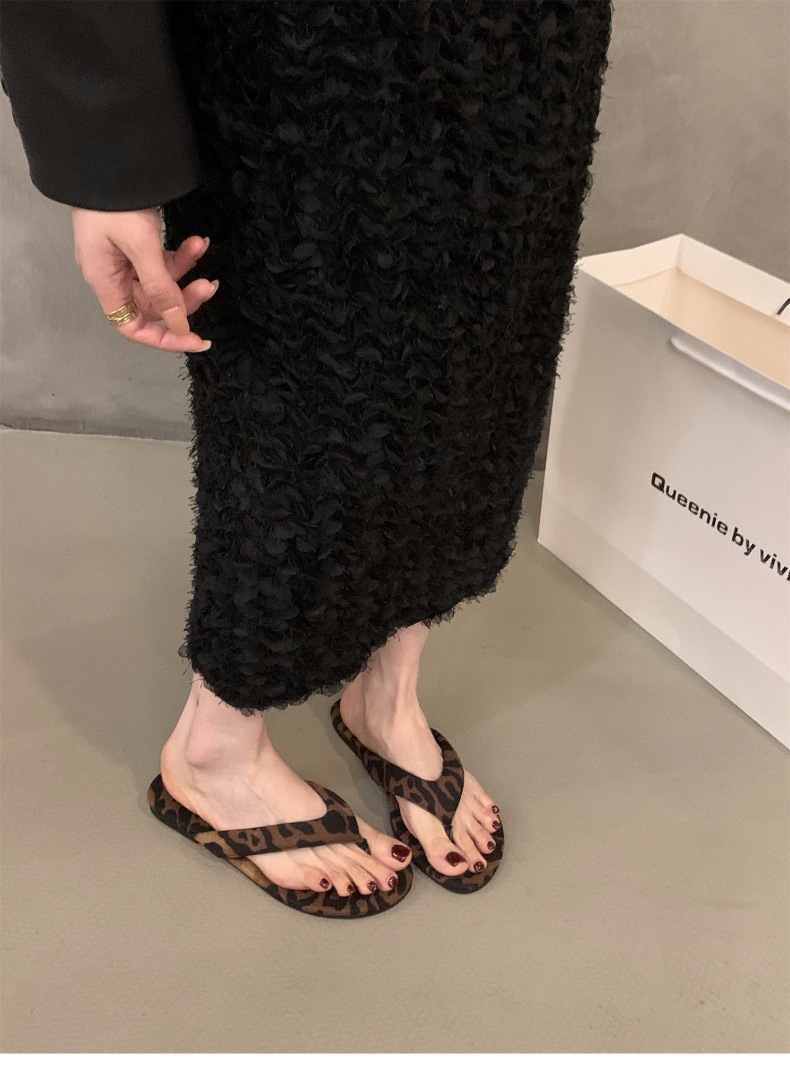 플랫 레오파드 무늬 플립 플롭 여성 신발 2024 여름 의상 비치 프렌치 샌들 레드 샌들스토어 가기