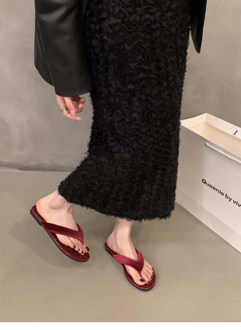 플랫 레오파드 무늬 플립 플롭 여성 신발 2024 여름 의상 비치 프렌치 샌들 레드 샌들
