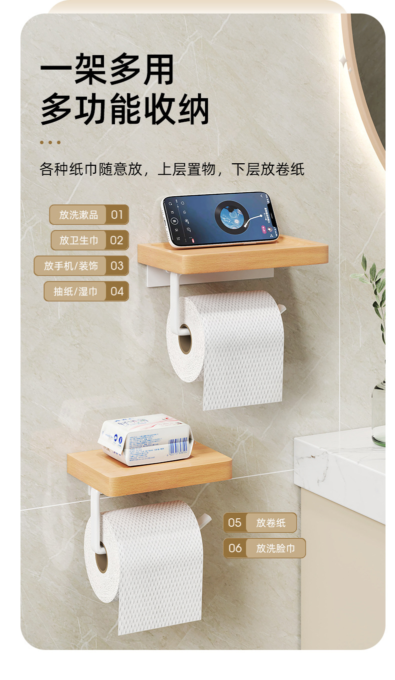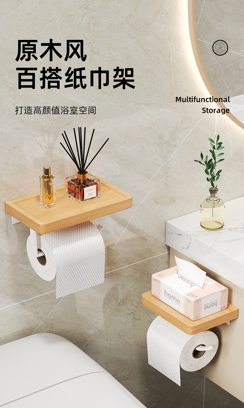 로그 스타일 화장실 티슈 홀더 펀치 프리 너도밤 화장실 보관 랙 화장실 손 종이 상자 바구니 롤러 종이 홀더