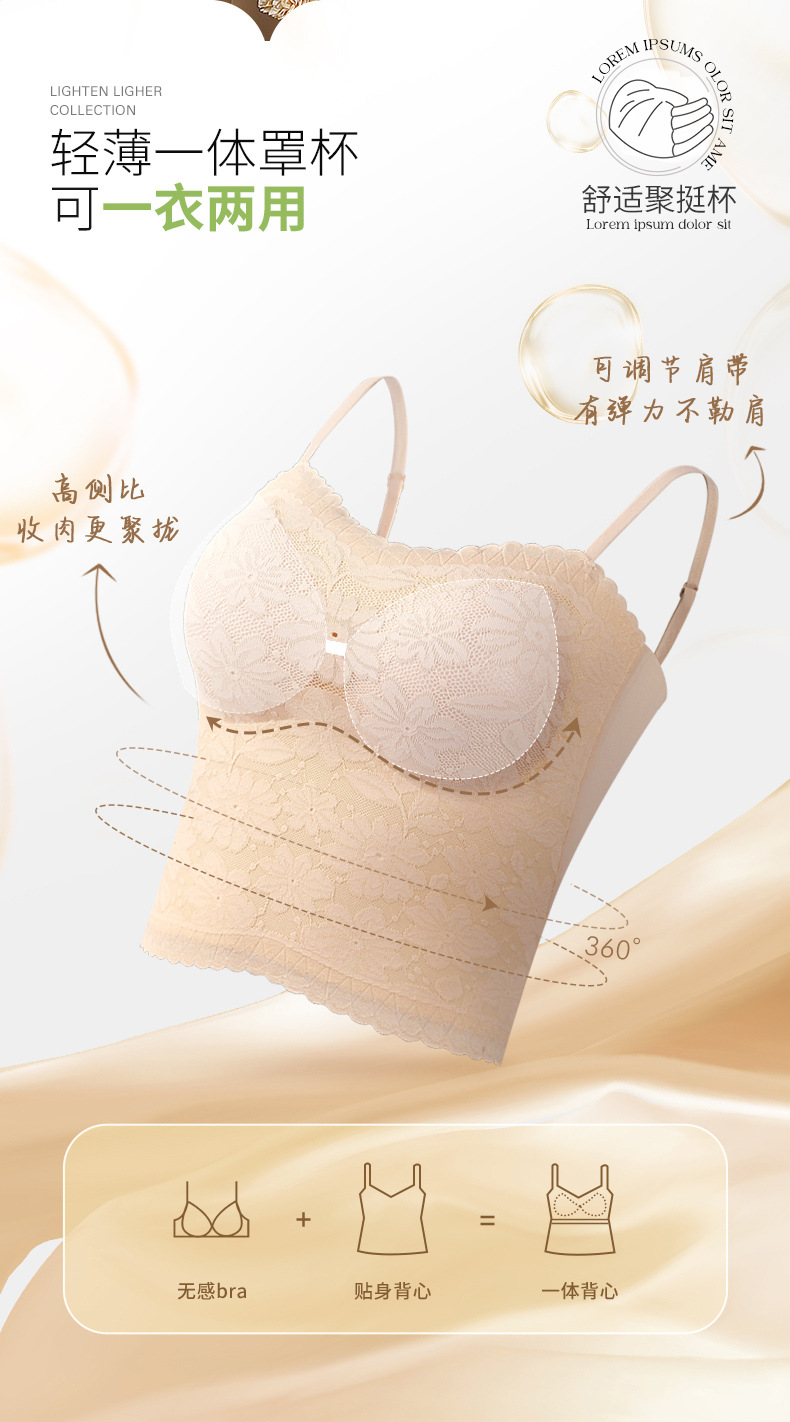 올 매치 레이스 카미 솔 여성의 새로운 고정 코스터베이스 속옷 미끄럼 방지 아름다운 뒷면 내부 랩 외부 착용 탑스토어 가기