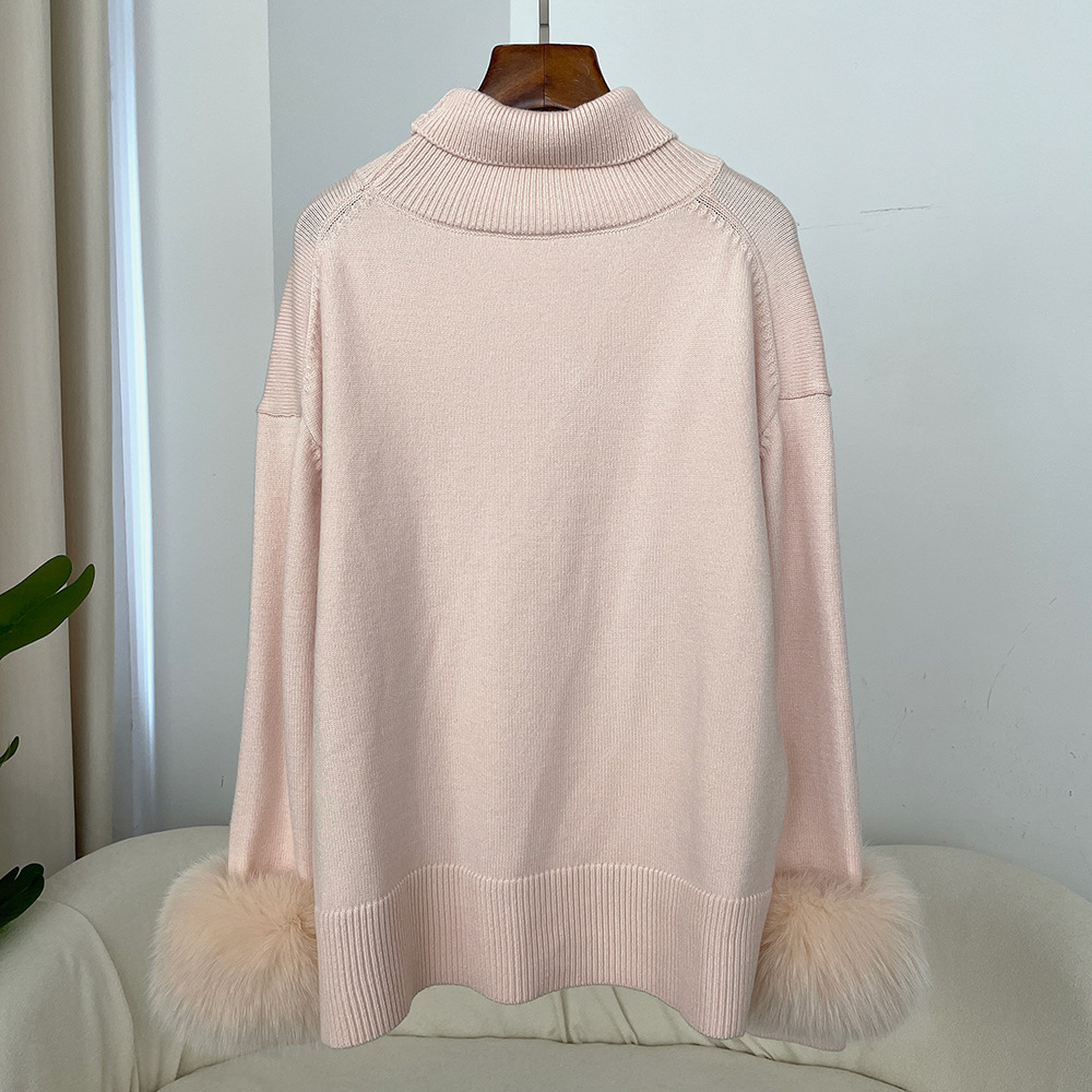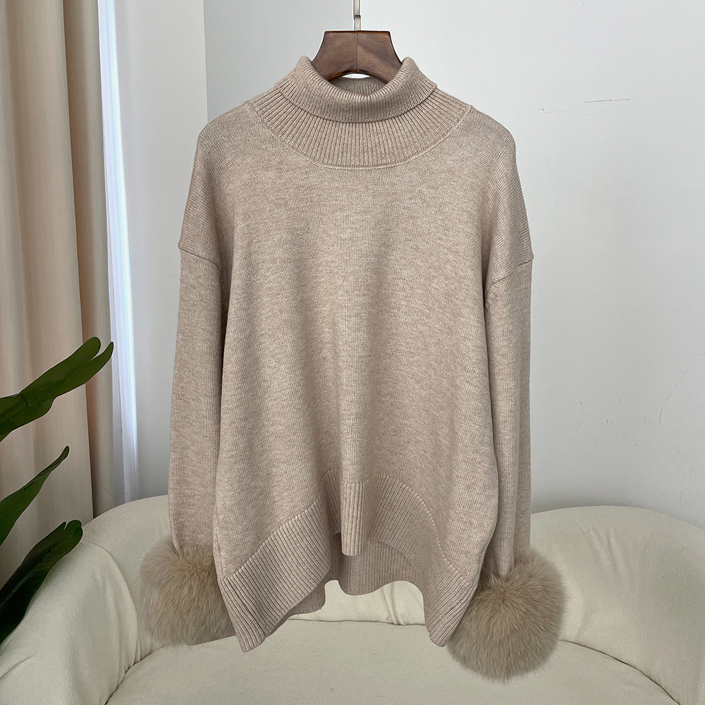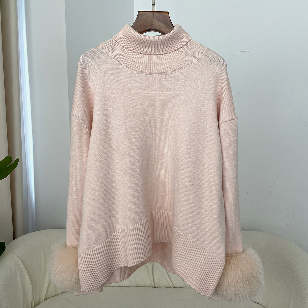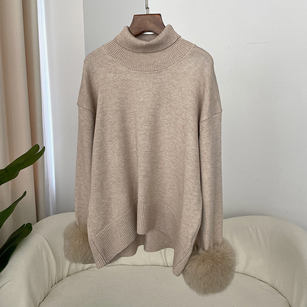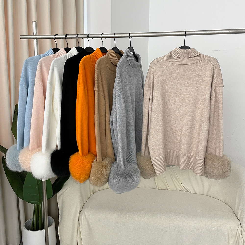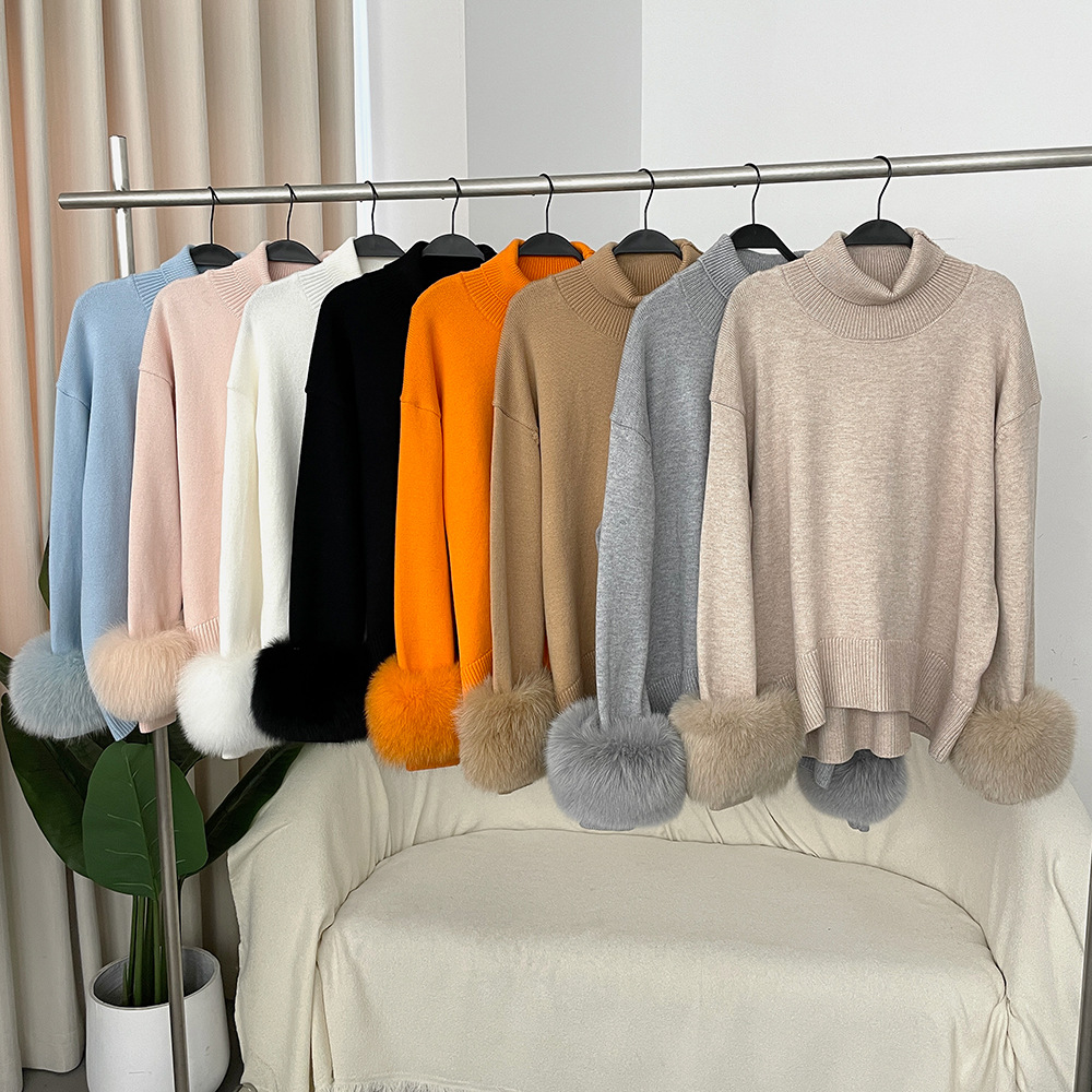 아마존 AliExpress 폭발 두꺼운 니트웨어 가을 및 겨울 새로운 느슨한 높은 목 진짜 폭스 커프 헤어 스웨터스토어 가기