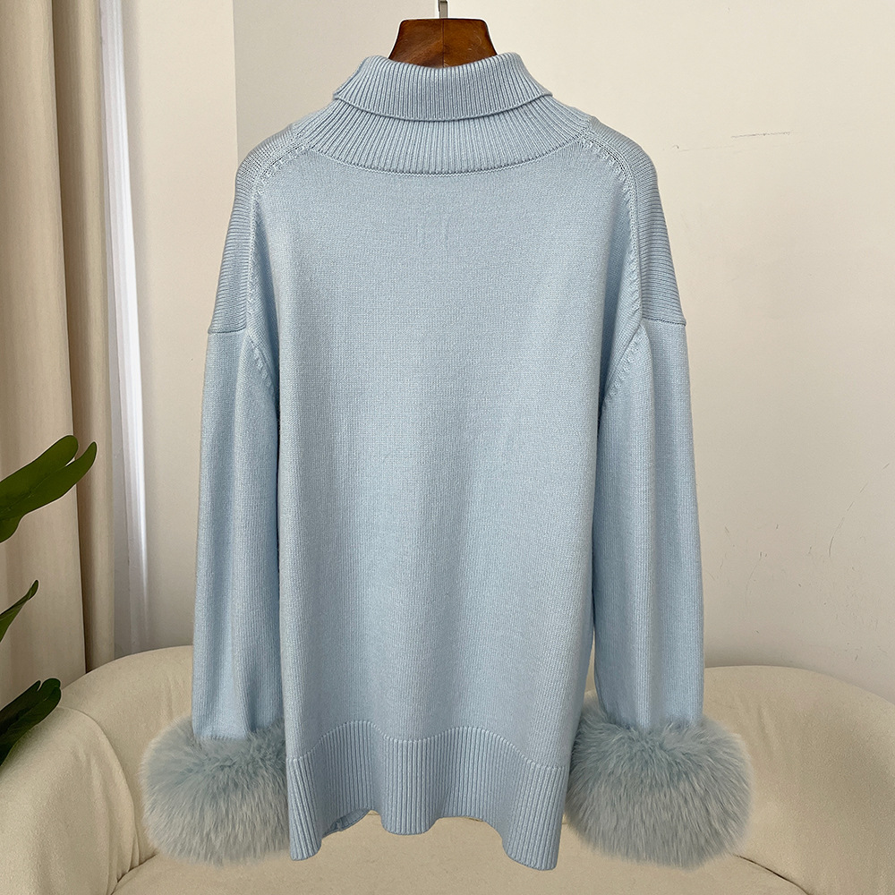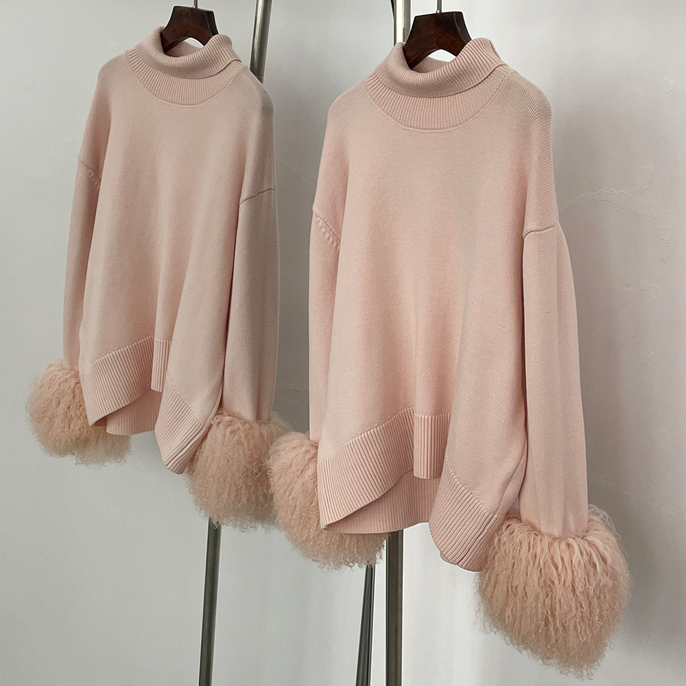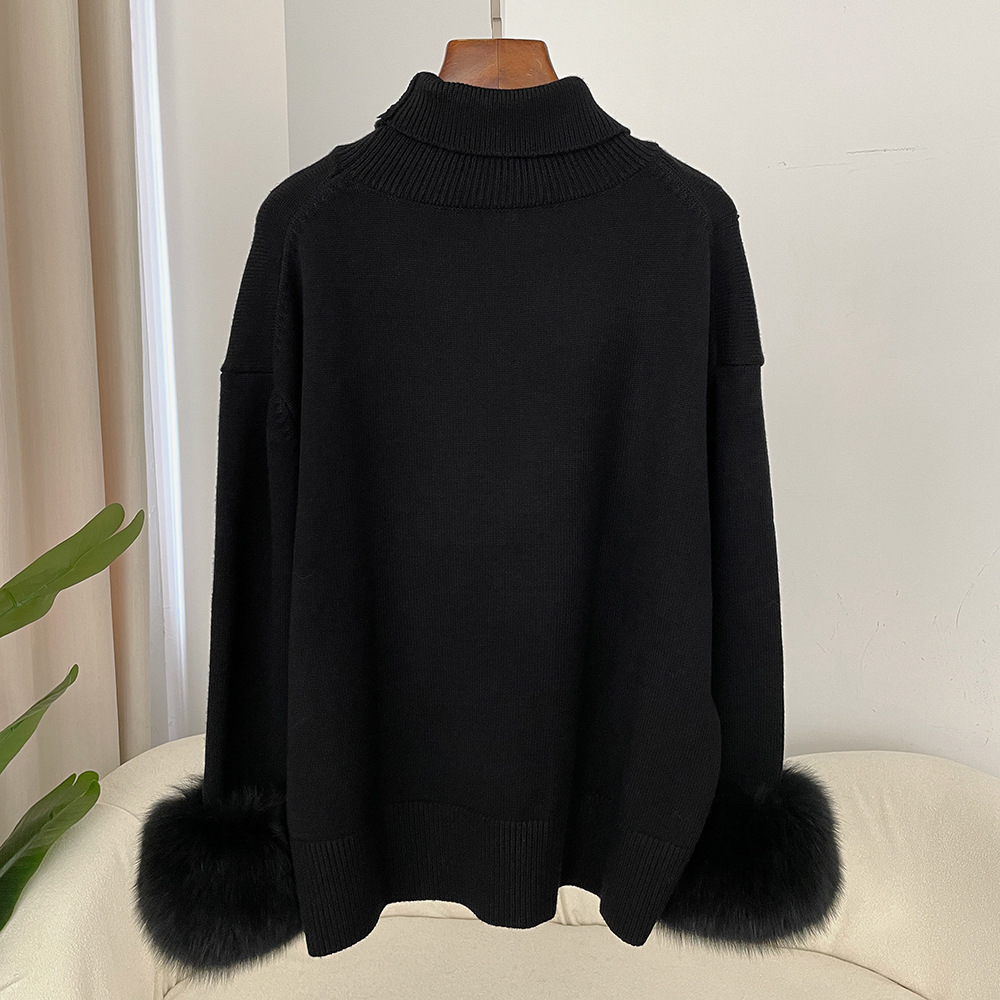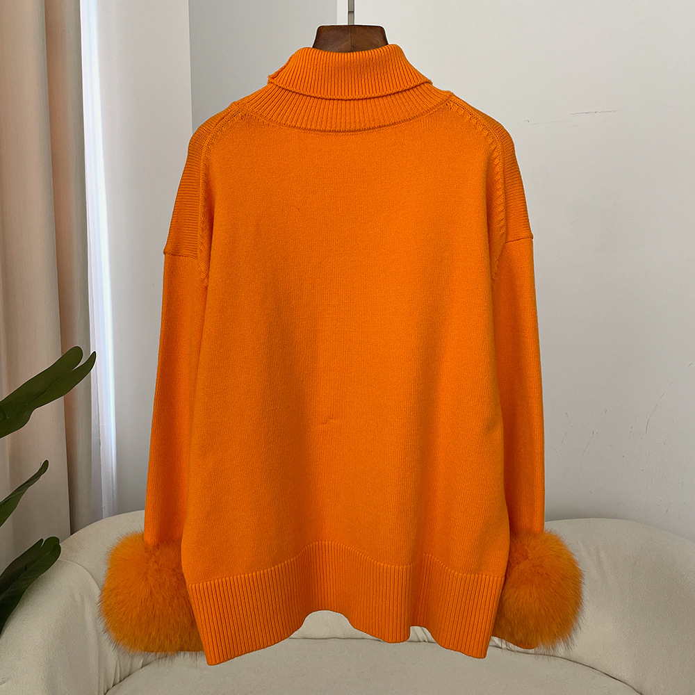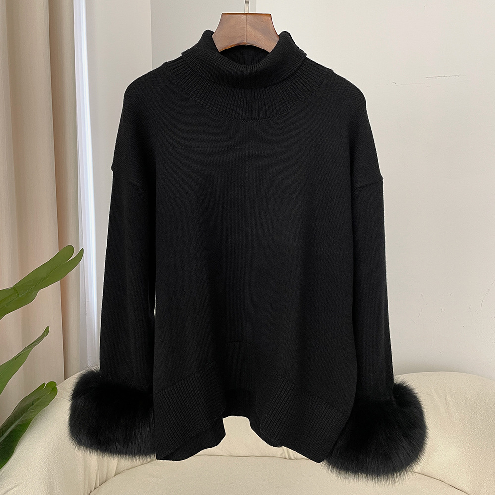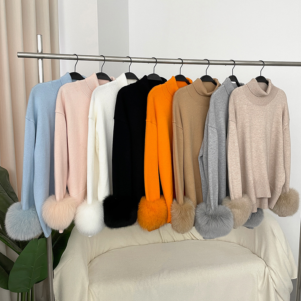 아마존 AliExpress 폭발 두꺼운 니트웨어 가을 및 겨울 새로운 느슨한 높은 목 진짜 폭스 커프 헤어 스웨터스토어 가기