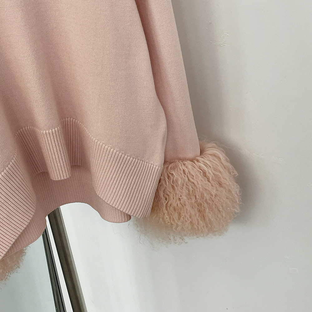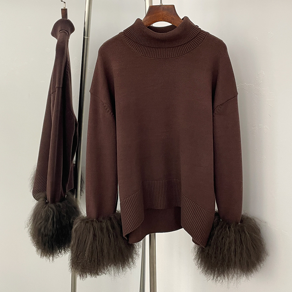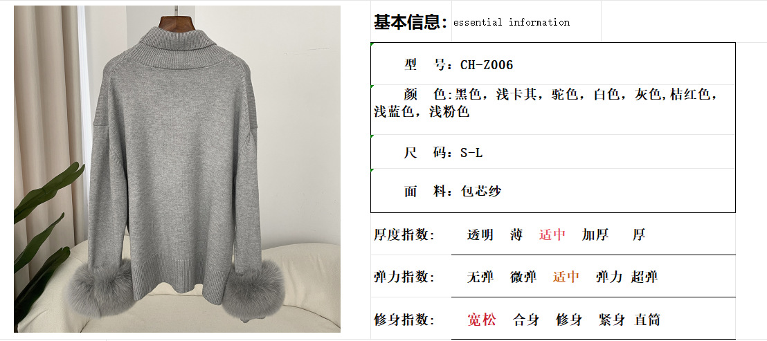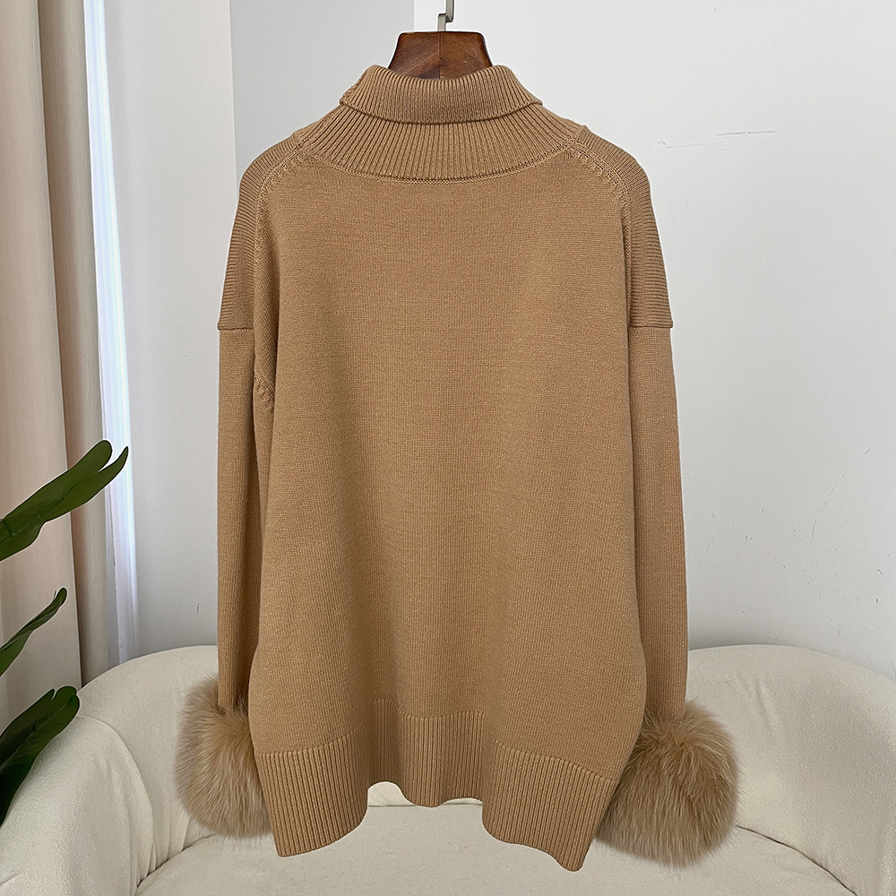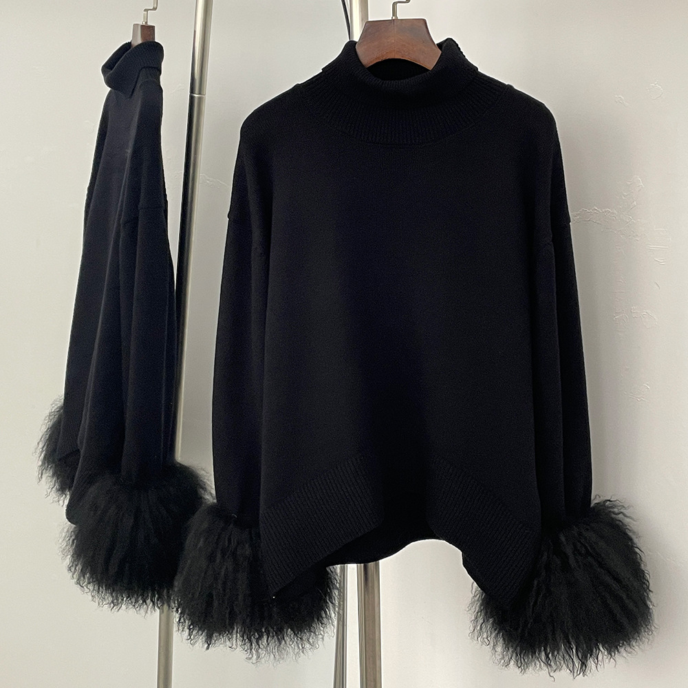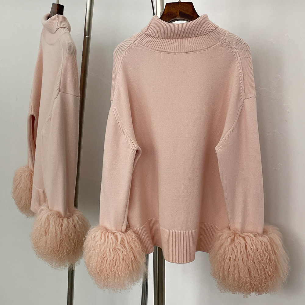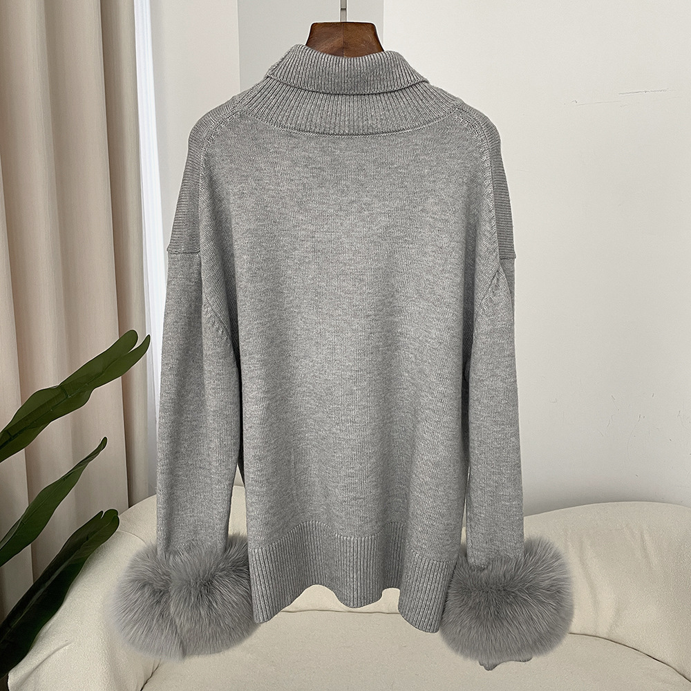 아마존 AliExpress 폭발 두꺼운 니트웨어 가을 및 겨울 새로운 느슨한 높은 목 진짜 폭스 커프 헤어 스웨터스토어 가기