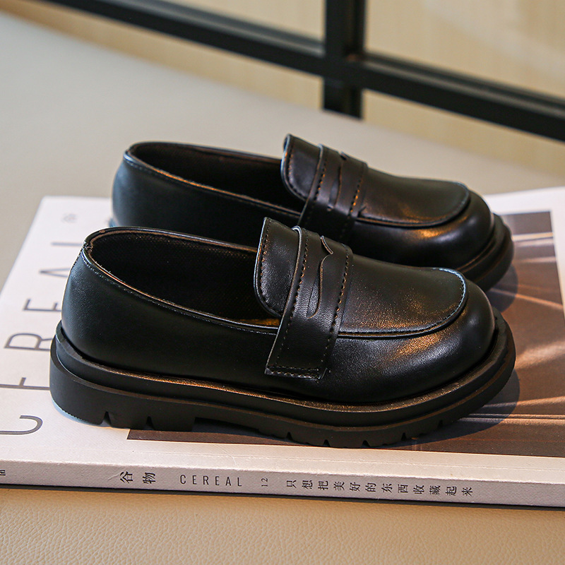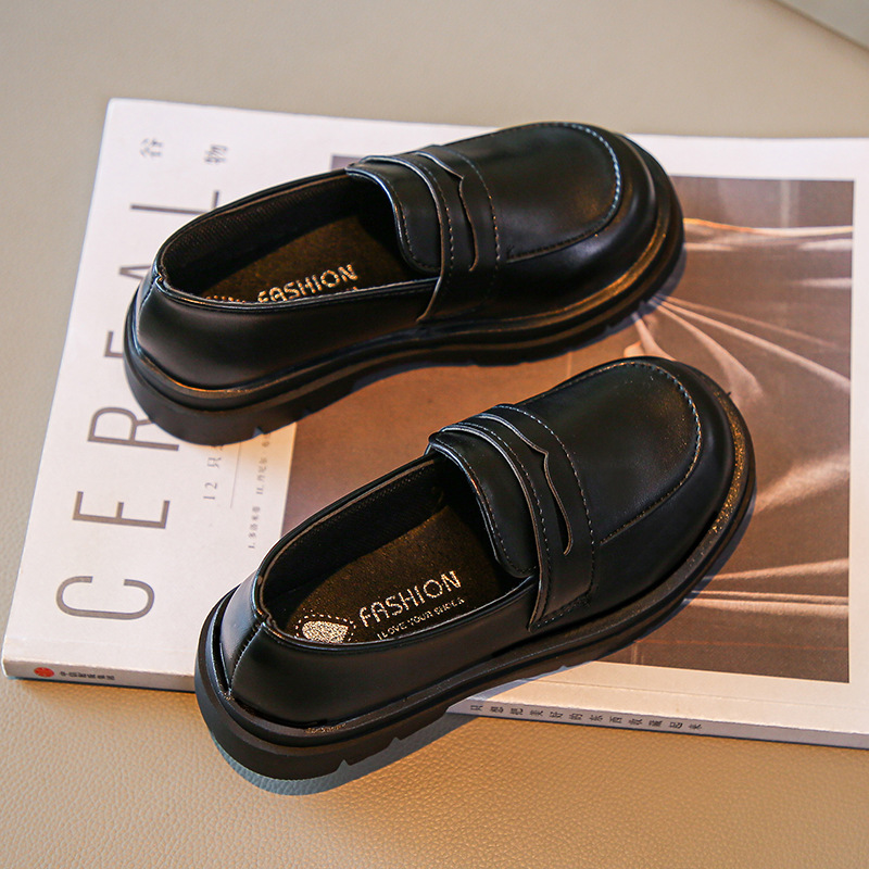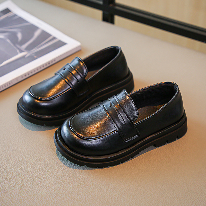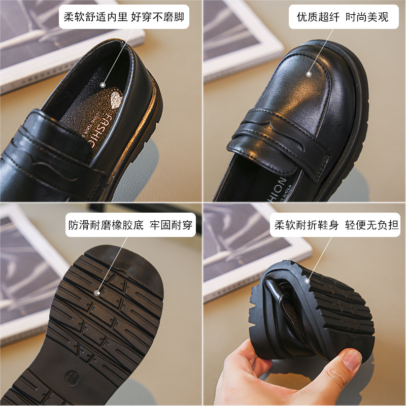 여자 가죽 신발 2024 새로운 어린이 검은 작은 가죽 신발 소녀 영국 스타일 초등 학생 공연 신발