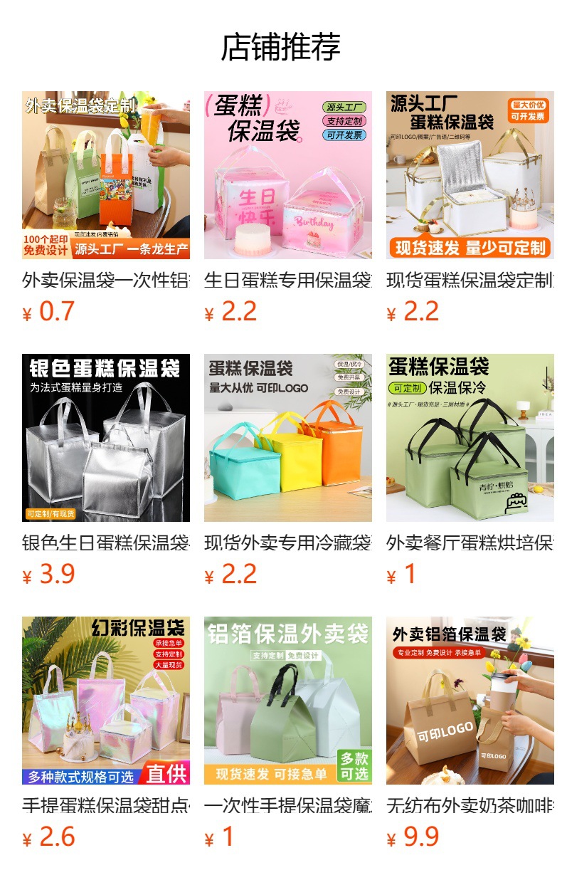 부직포 알루미늄 호일 가방 케이크 테이크아웃 보온 가방 두꺼운 대형 로고 인쇄 대용량 휴대용 냉장 가방 도매스토어 가기