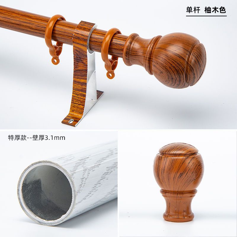 두꺼운 커튼로드 우드 그레인 로마로드 싱글 로드 알루미늄 합금 커튼 트랙 천공 커튼 오픈 레일 액세서리스토어 가기