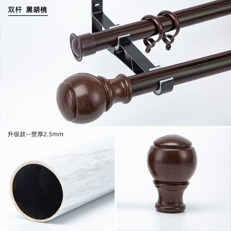두꺼운 커튼로드 우드 그레인 로마로드 싱글 로드 알루미늄 합금 커튼 트랙 천공 커튼 오픈 레일 액세서리