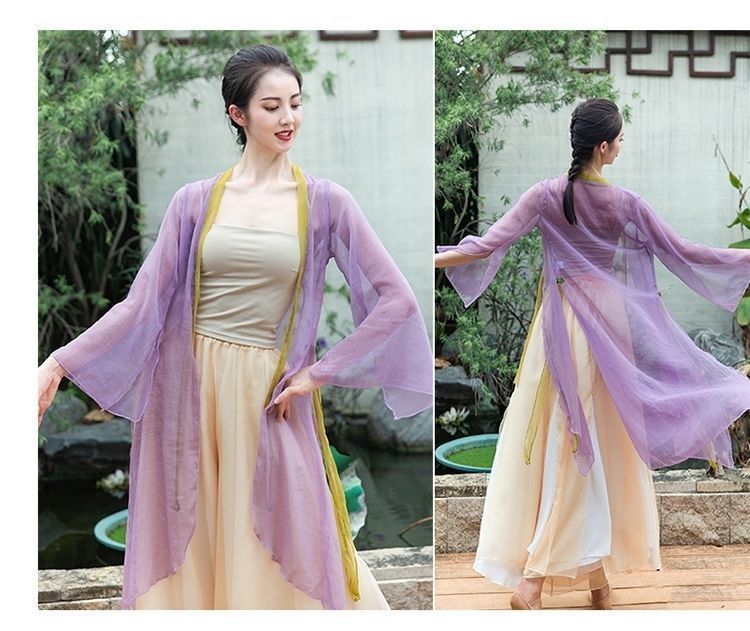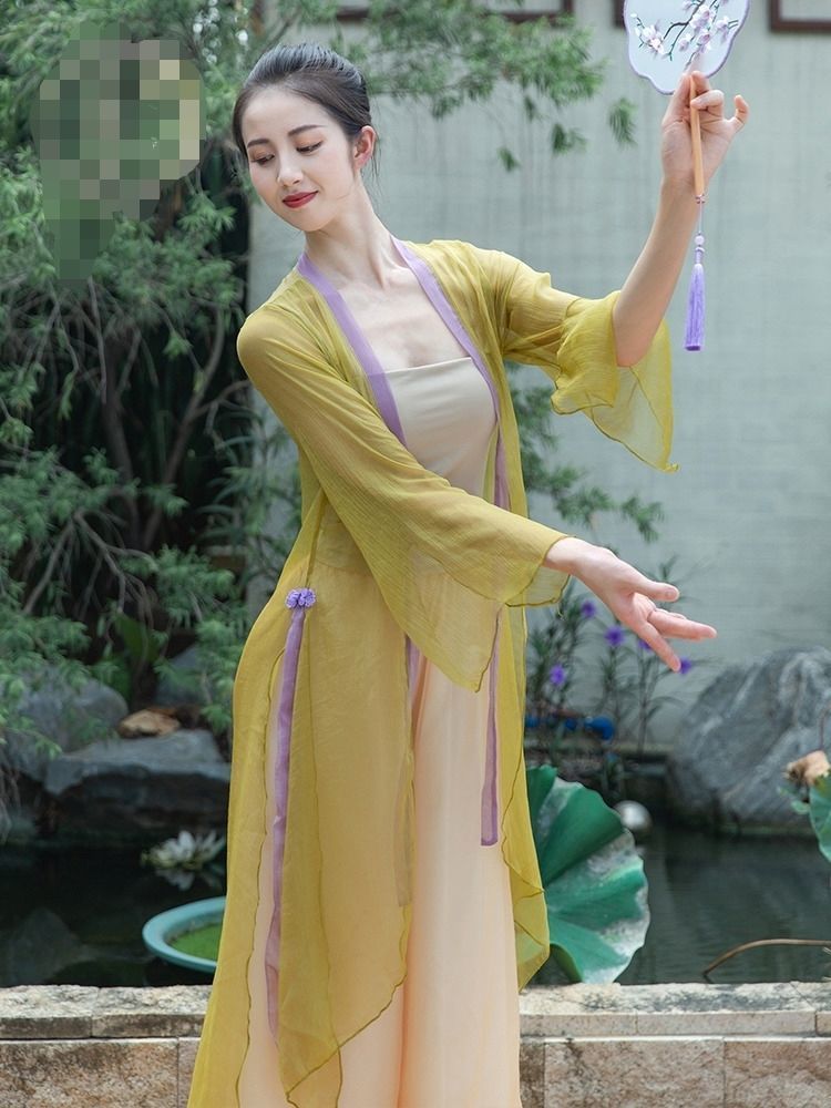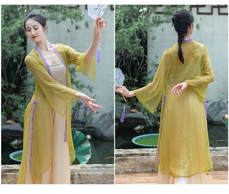 2024 클래식 댄스 베일 옷 여성 라임 연습 옷 우아한 긴 외부 탑 중국 댄스 테이블 공연 옷스토어 가기