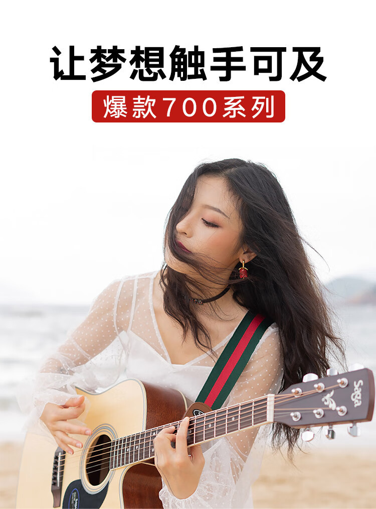 사가 (SAGA) 포크 기타 스프루스 싱글 플레이트 700 시리즈 어쿠스틱 전기 박스 핑거 연주와 노래의 초보자스토어 가기