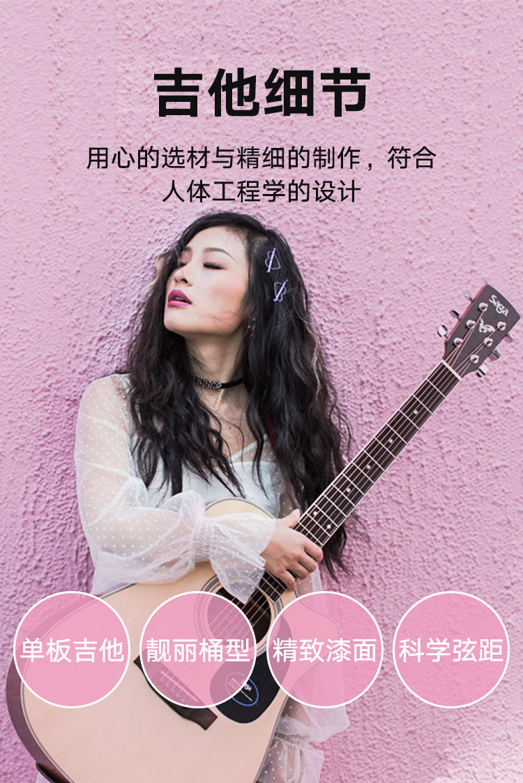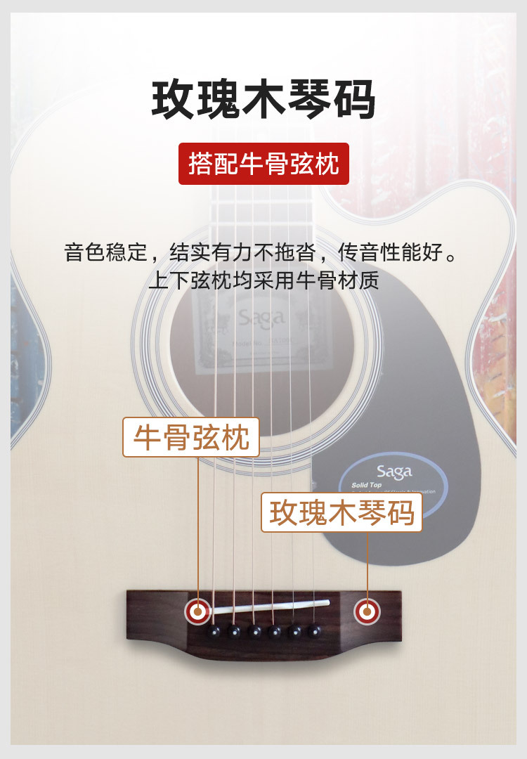 사가 (SAGA) 포크 기타 스프루스 싱글 플레이트 700 시리즈 어쿠스틱 전기 박스 핑거 연주와 노래의 초보자