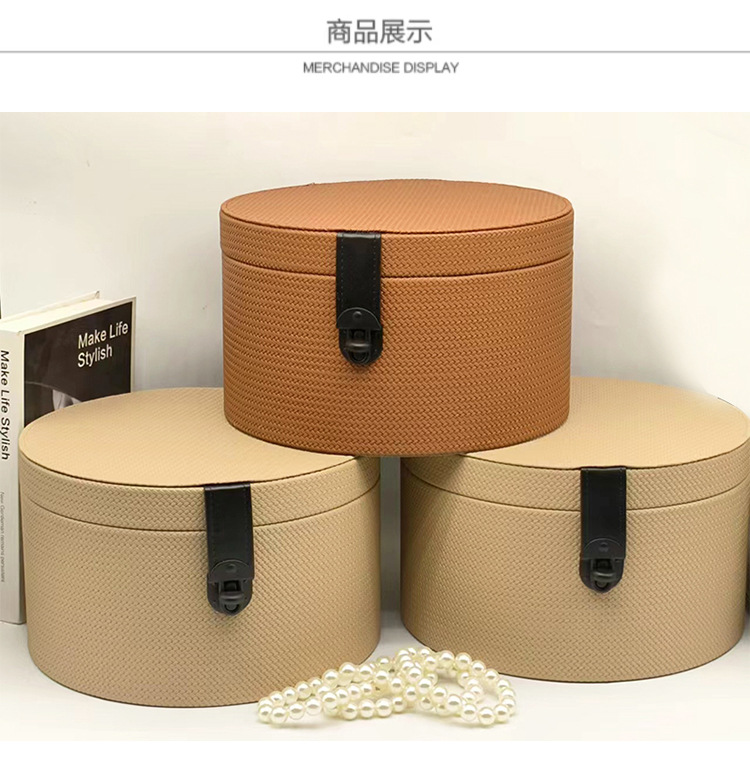 현대 간단한 가죽 둥근 상자 모자 저장 상자 모델 방 망토 옷장 속옷 양말 보관 상자 장식품스토어 가기
