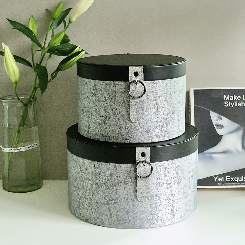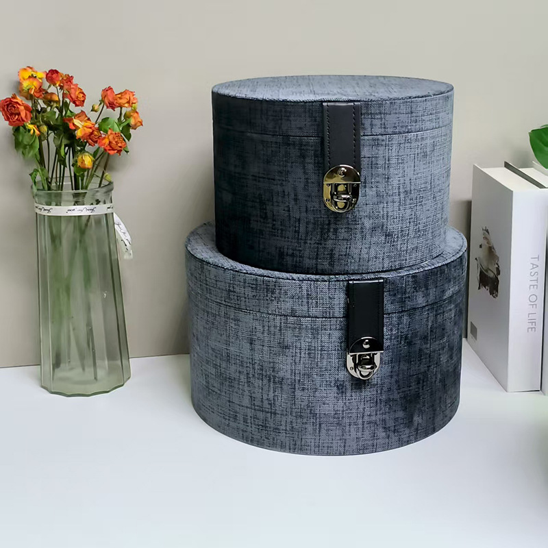 현대 간단한 가죽 둥근 상자 모자 저장 상자 모델 방 망토 옷장 속옷 양말 보관 상자 장식품