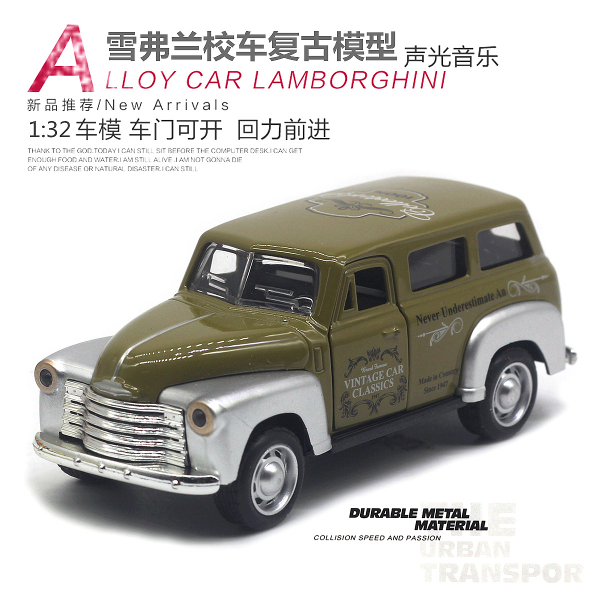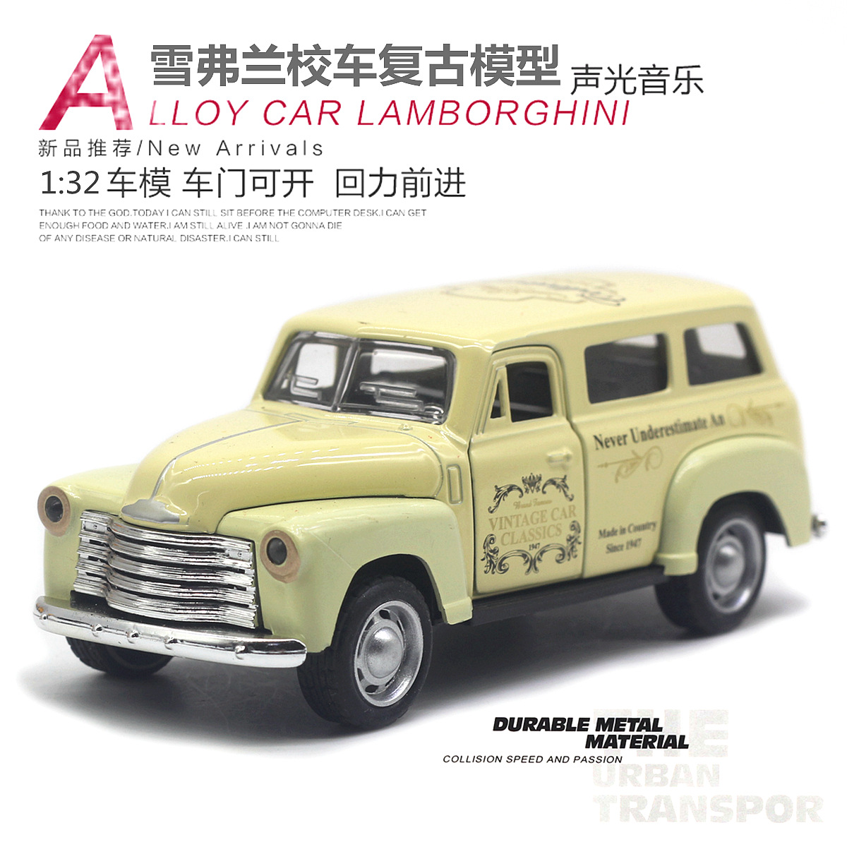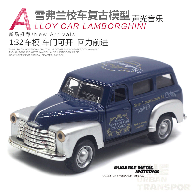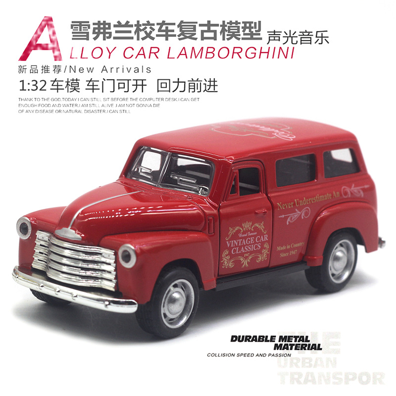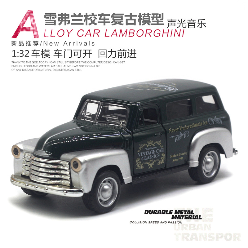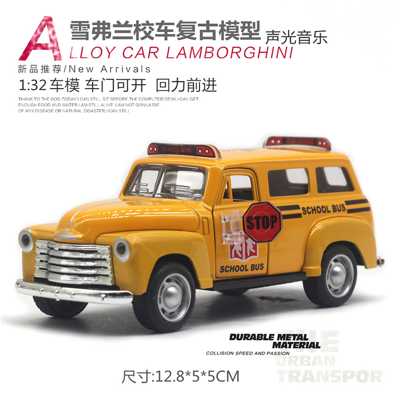 【商品名称】1:32雪弗兰校车合金仿真复古模型(2开门带声光)