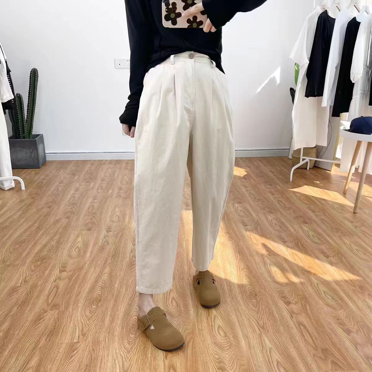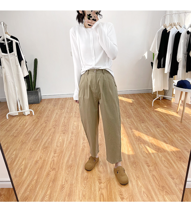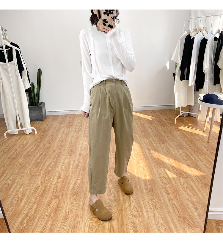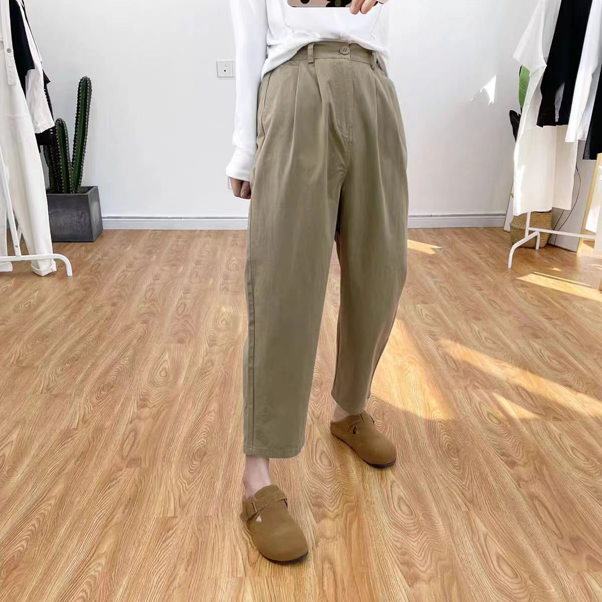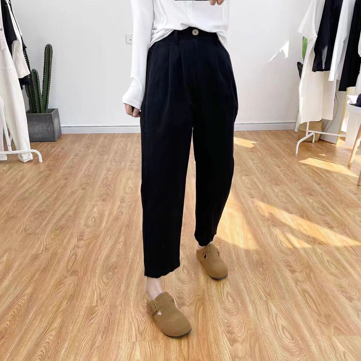 일본 캐주얼 바지 여성용 느슨한 할렌 바지 봄과 여름 느슨한 허리 슬리밍 무 바지 스트레이트 바지스토어 가기