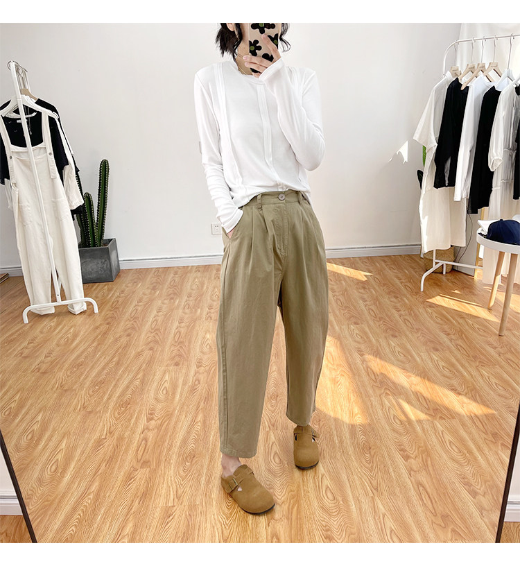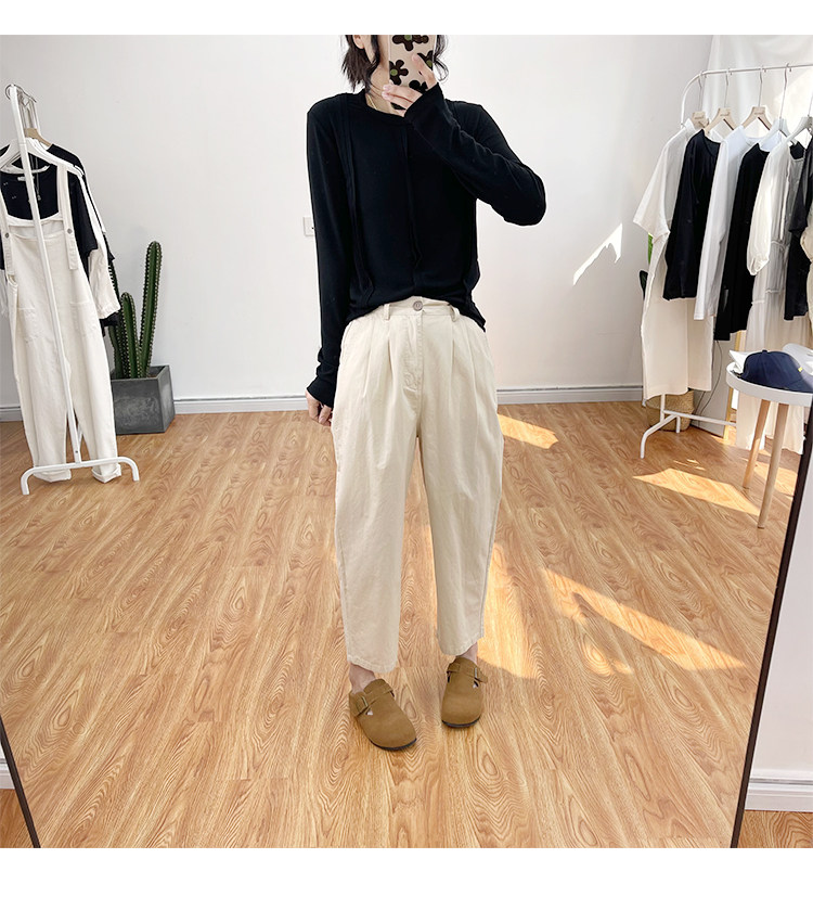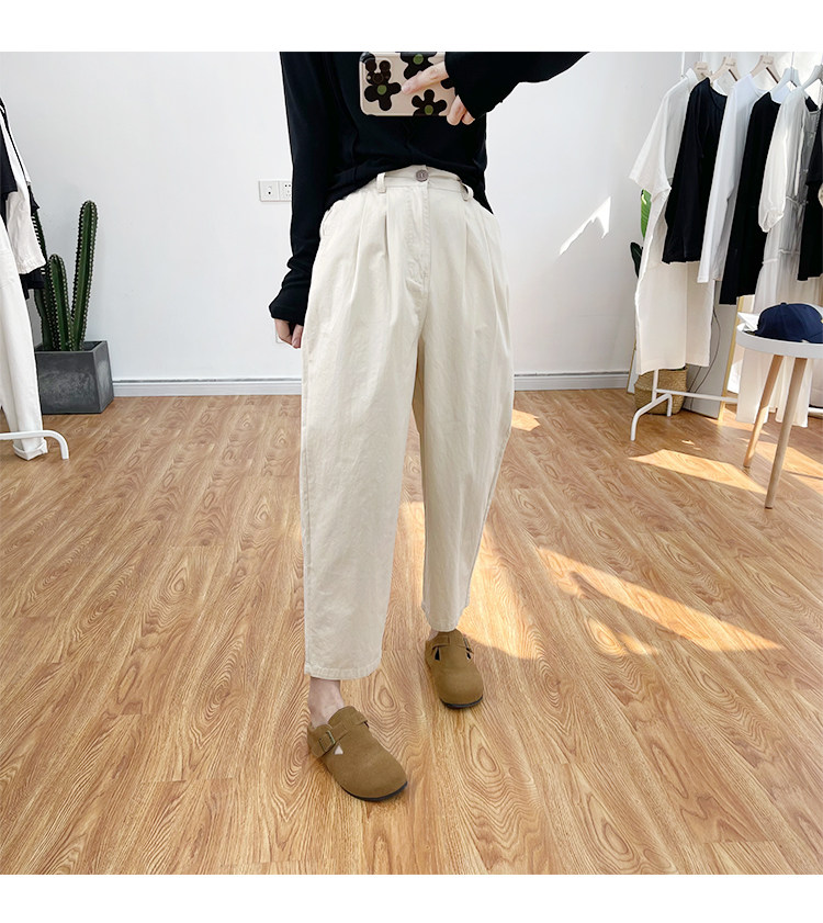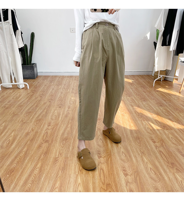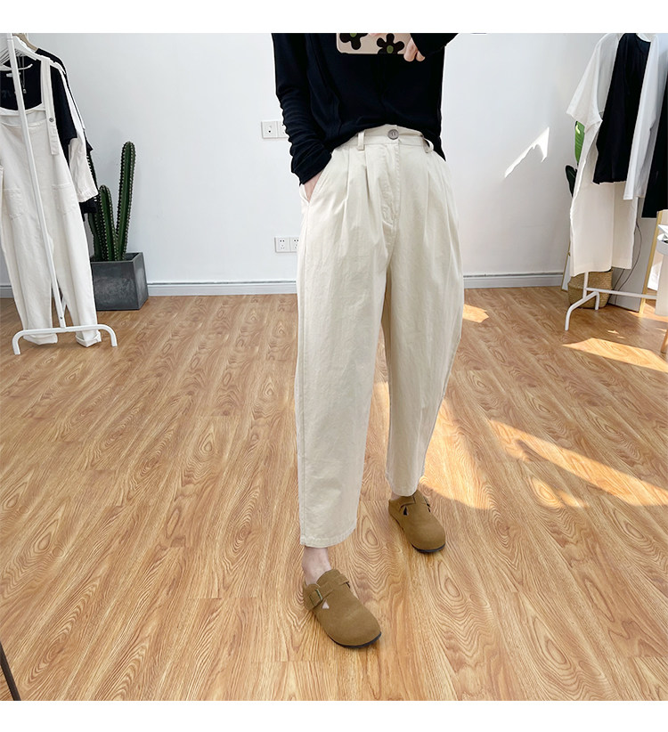 일본 캐주얼 바지 여성용 느슨한 할렌 바지 봄과 여름 느슨한 허리 슬리밍 무 바지 스트레이트 바지
