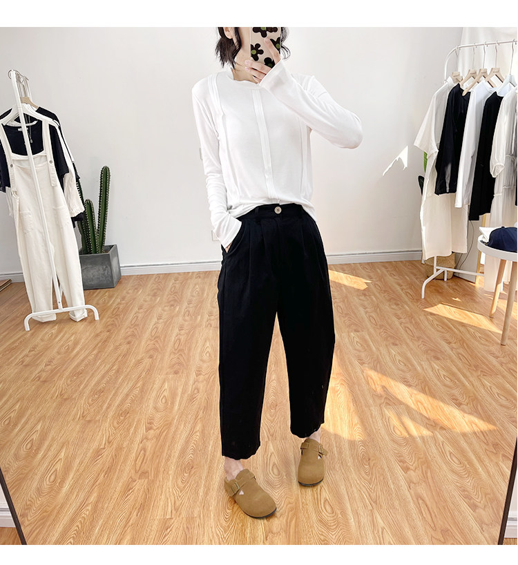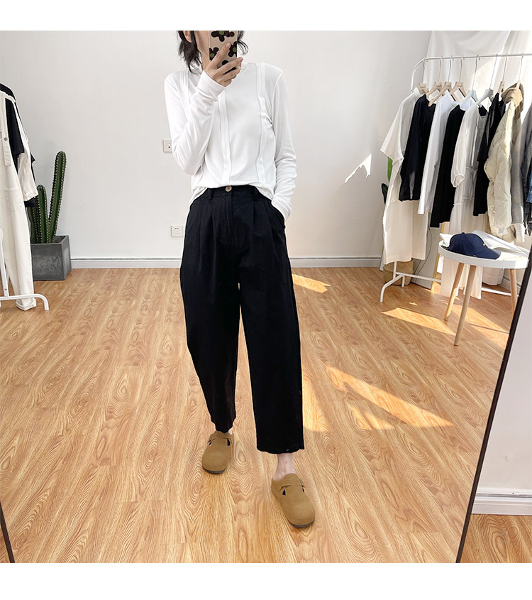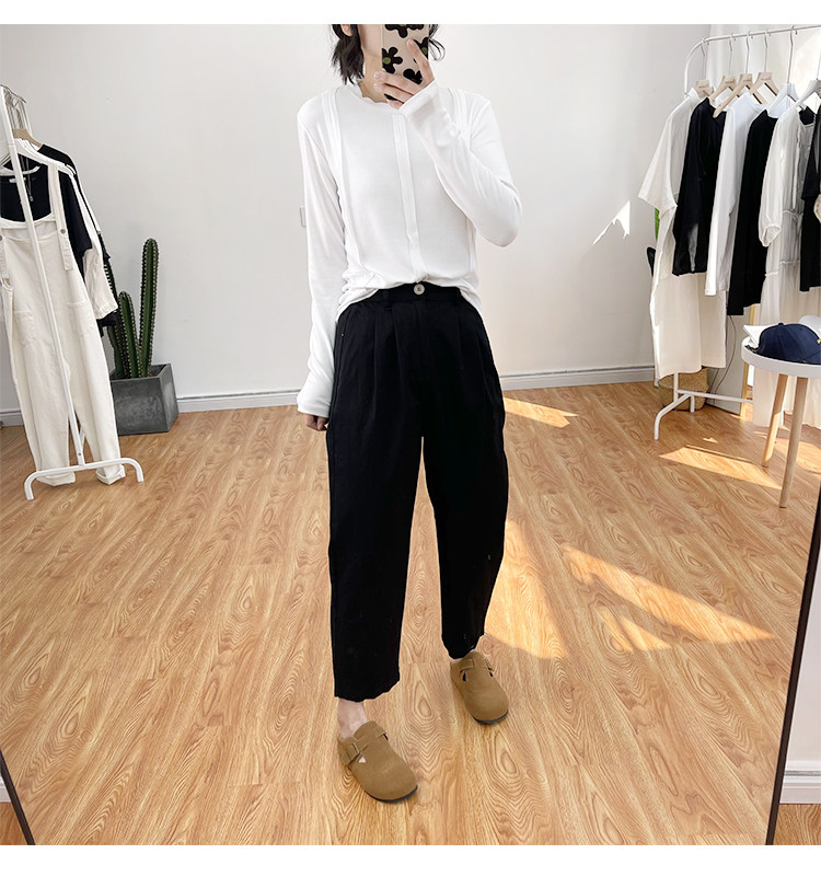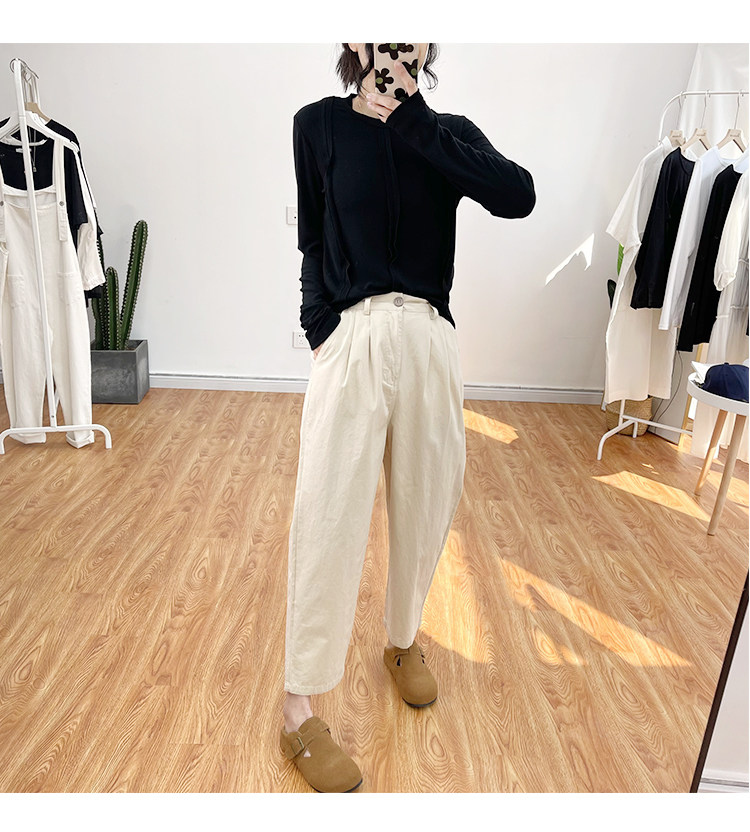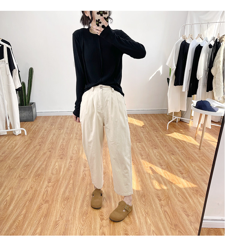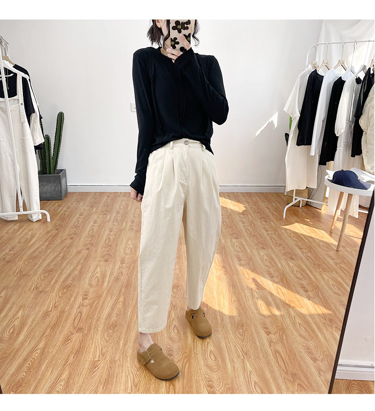 일본 캐주얼 바지 여성용 느슨한 할렌 바지 봄과 여름 느슨한 허리 슬리밍 무 바지 스트레이트 바지