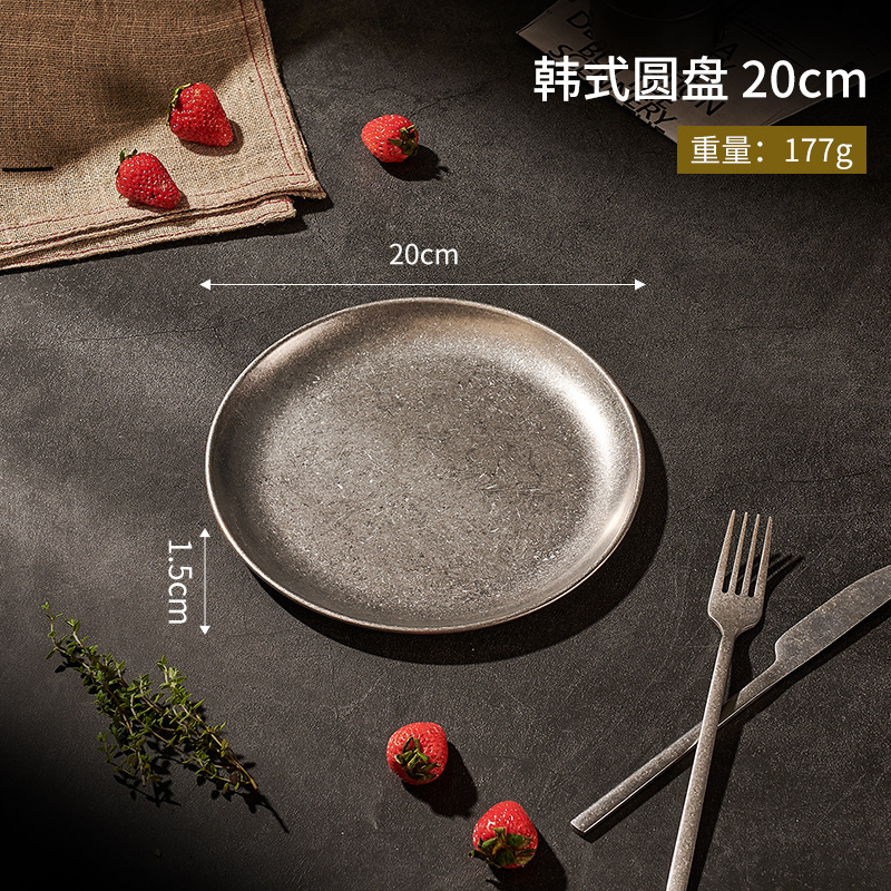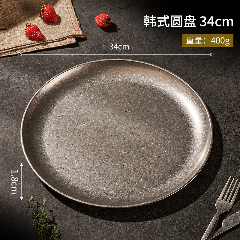 304 스테인레스 스틸 플레이트 산업 스타일 오래된 접시 커피 트레이 딤섬 서양 접시 평면 바닥 디스크 빈티지 식기스토어 가기