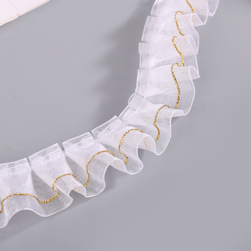 재고 2.5cm 더블 레이어 스노우 원사 주름 레이스 수제 DIY 꽃 바구니 랜턴 장식 스커트 의류 액세서리스토어 가기