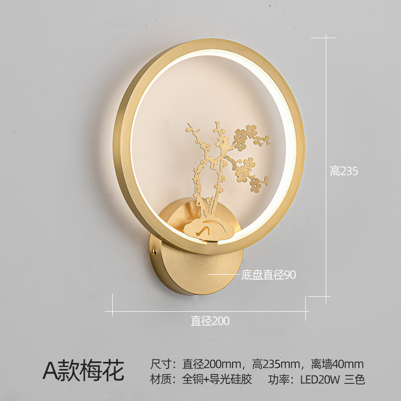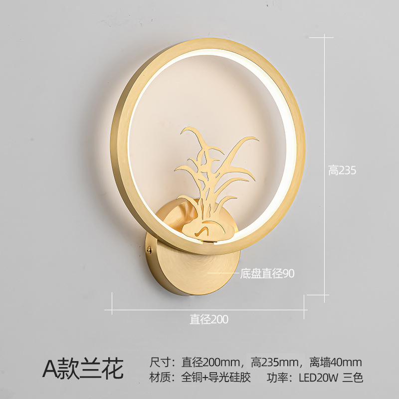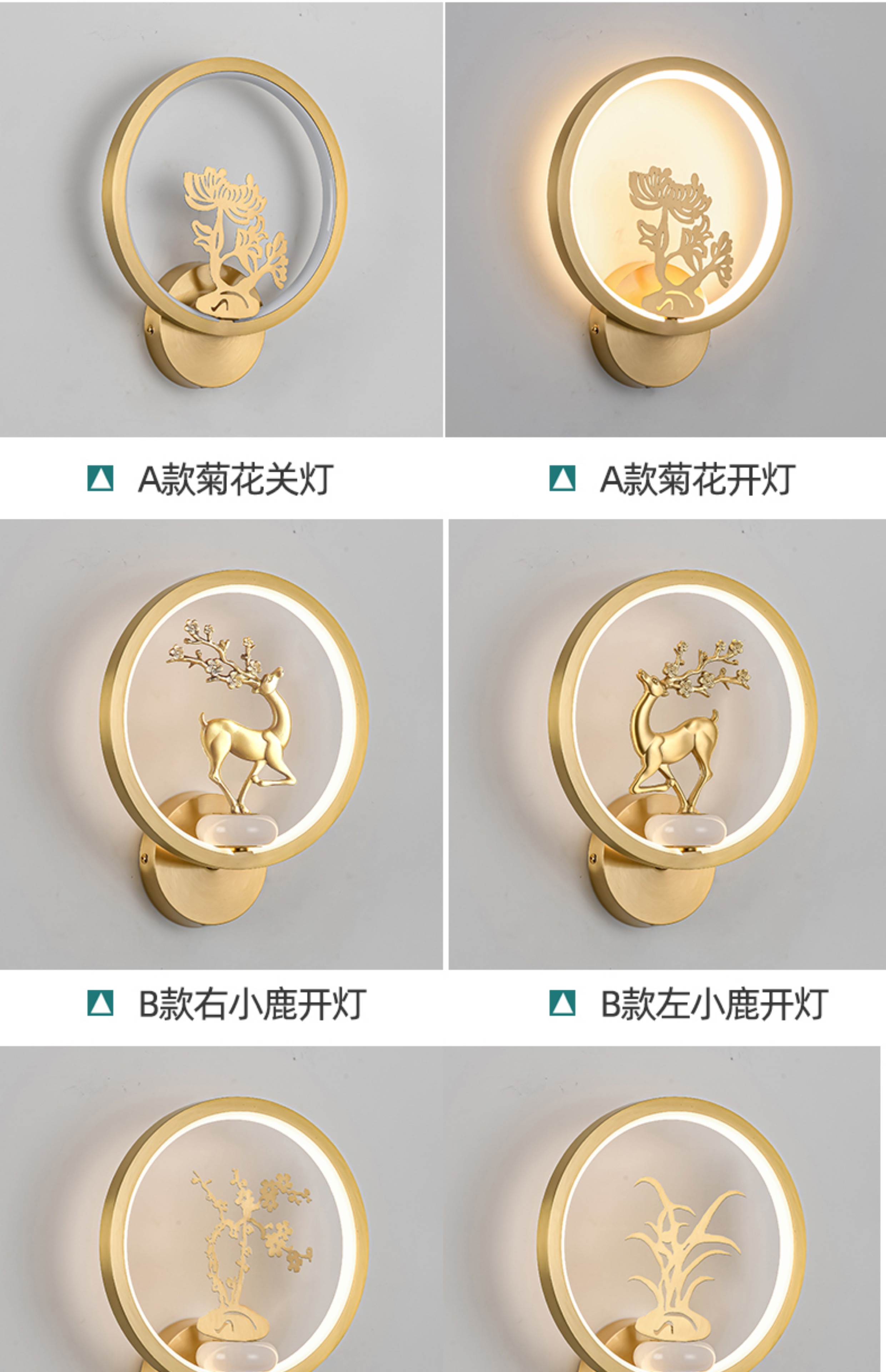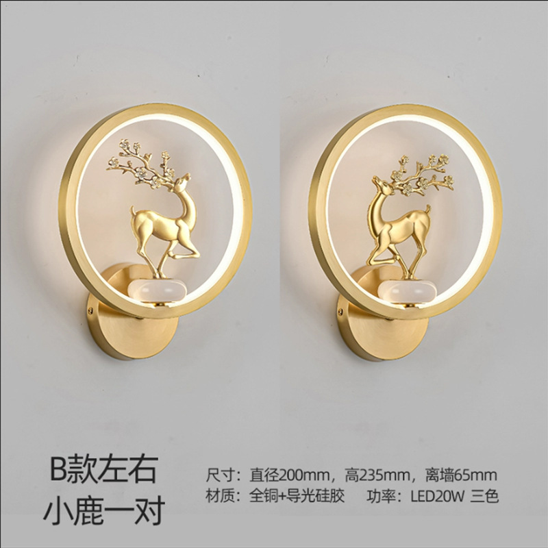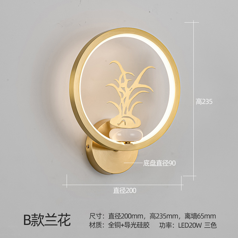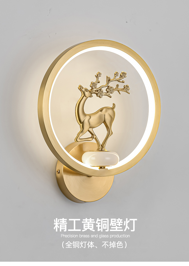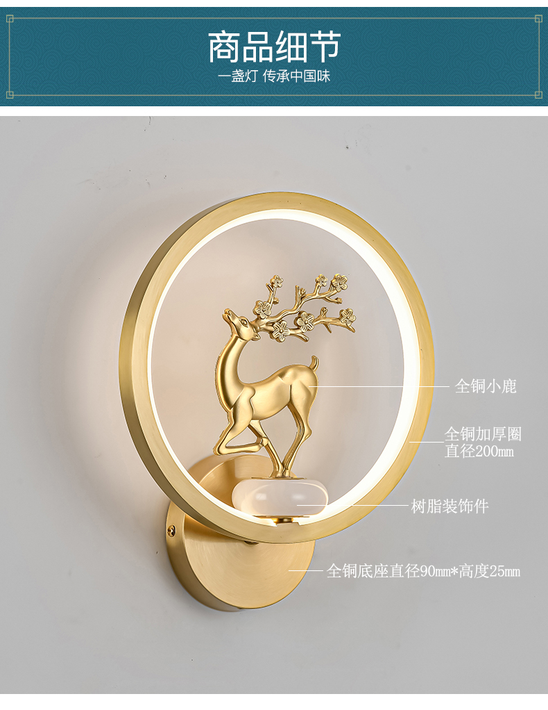새로운 중국 스타일 거실 배경 벽 모든 구리 벽 램프 계단 램프 침대 옆 LED 복도 선 중국 스타일 램프스토어 가기