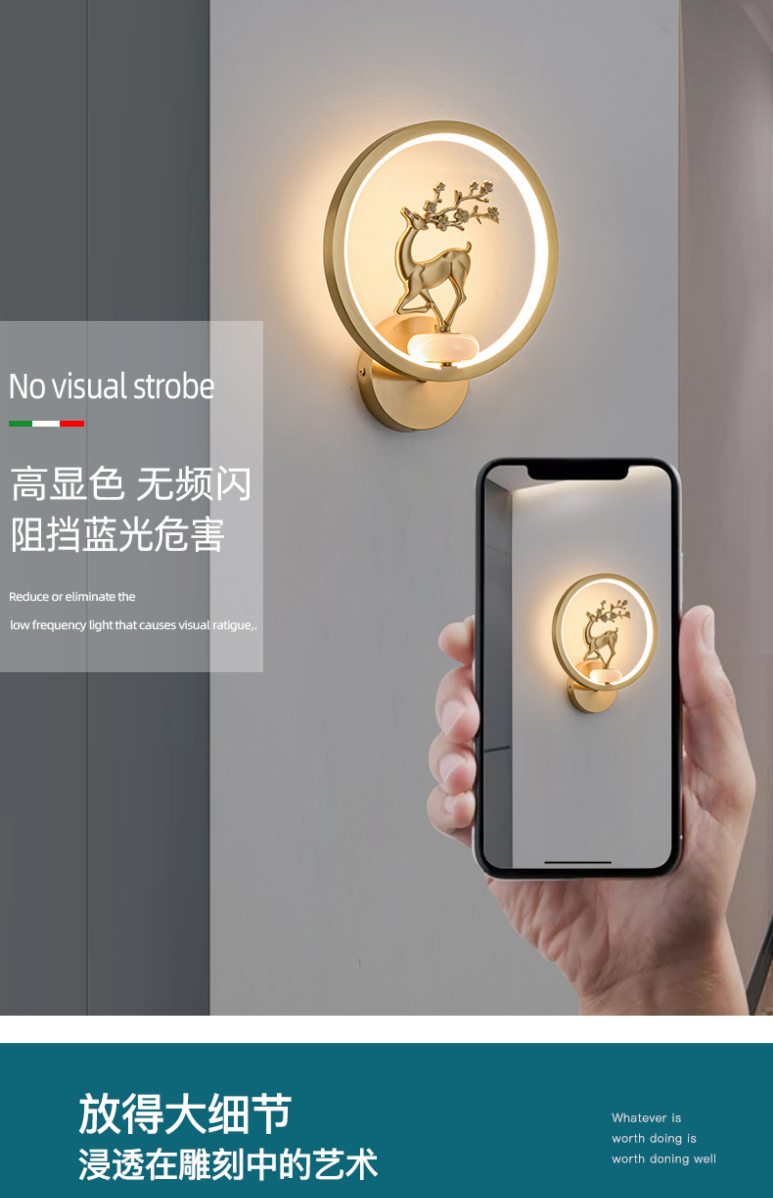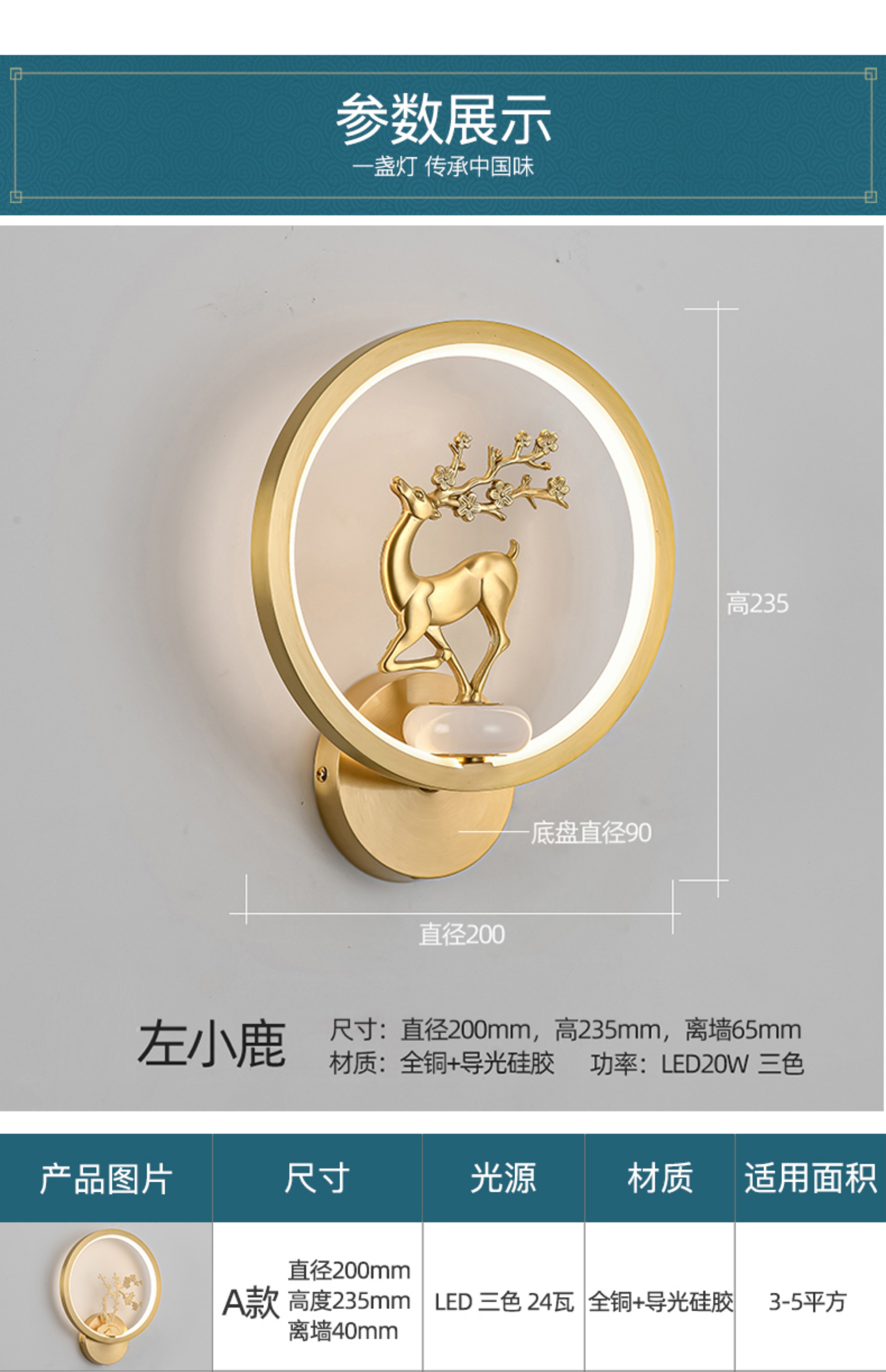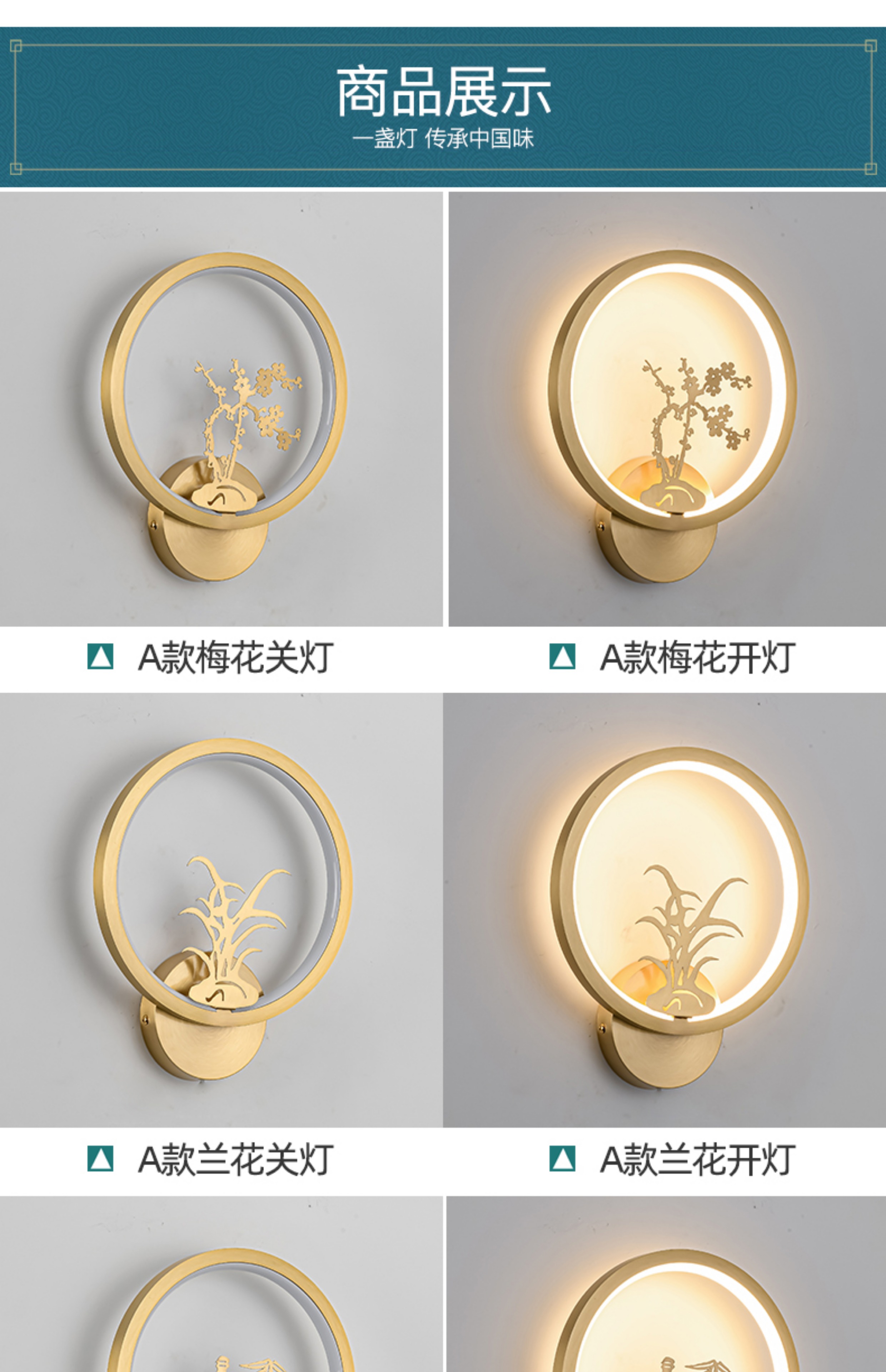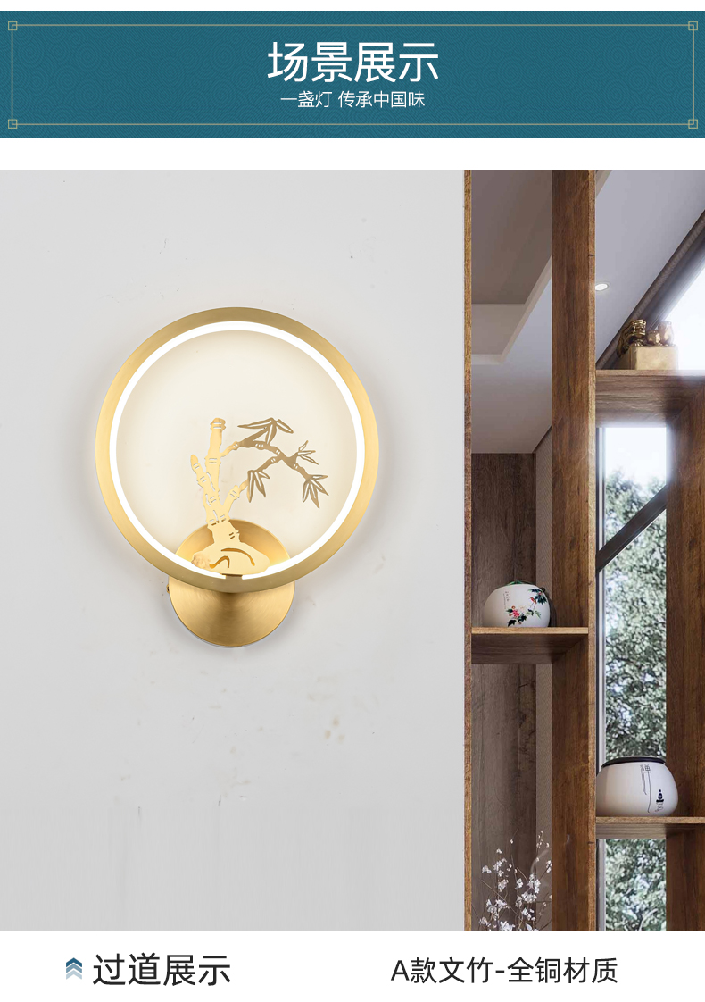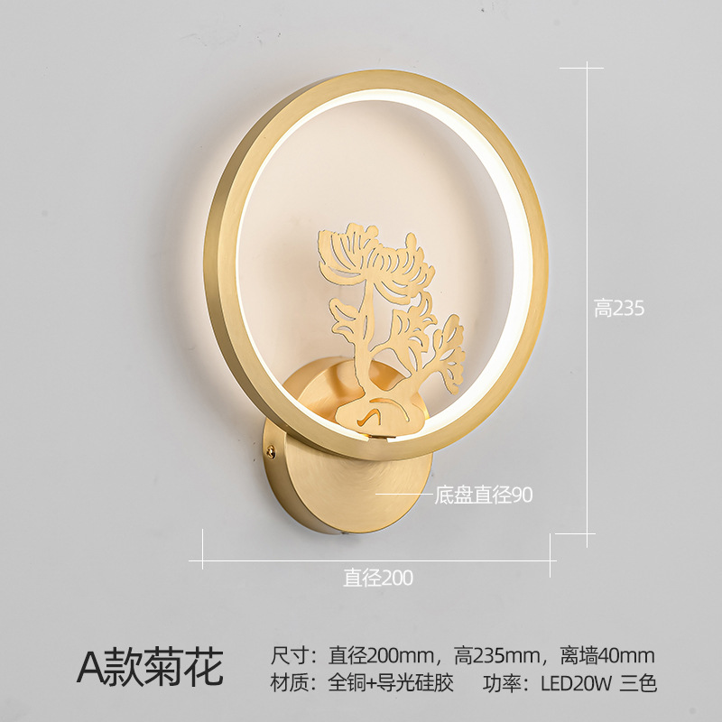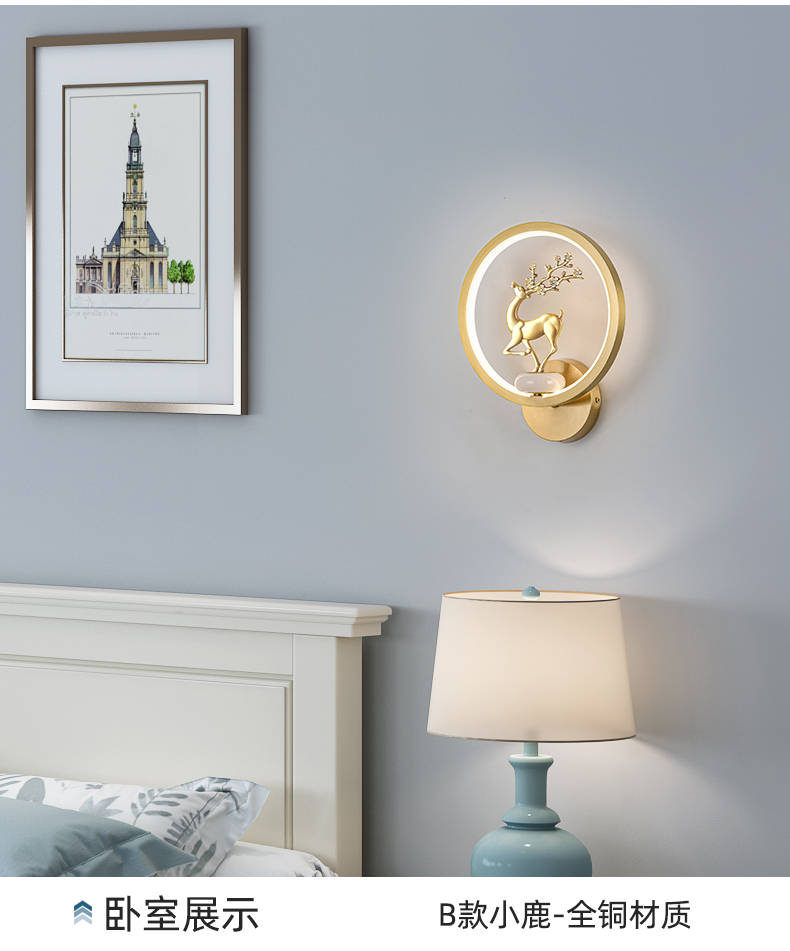 새로운 중국 스타일 거실 배경 벽 모든 구리 벽 램프 계단 램프 침대 옆 LED 복도 선 중국 스타일 램프스토어 가기