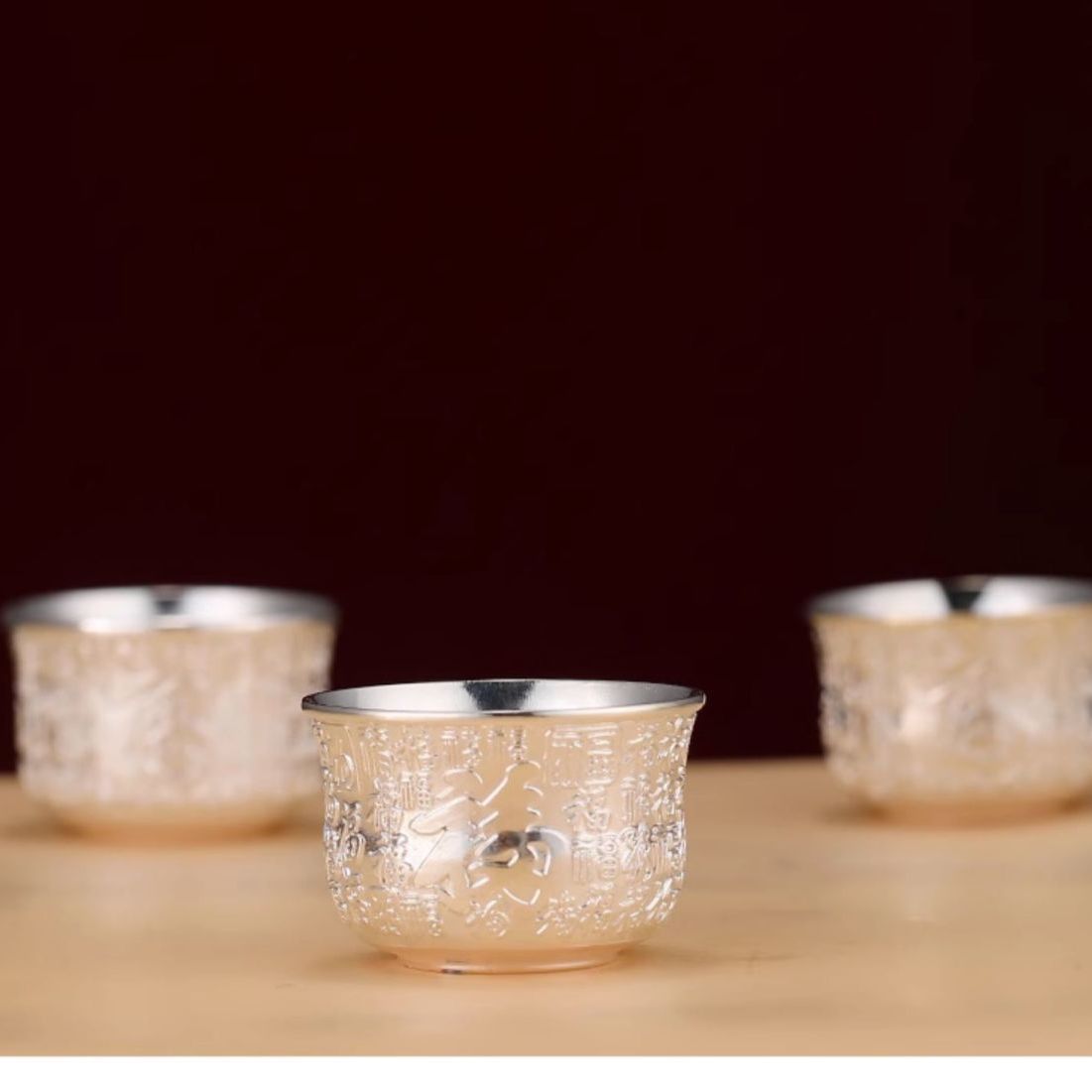오늘 [공장 누출] 정품 실버 찻잔 실버 장식품 고급 실버 와인 컵 바이푸 행운의 찻잔
