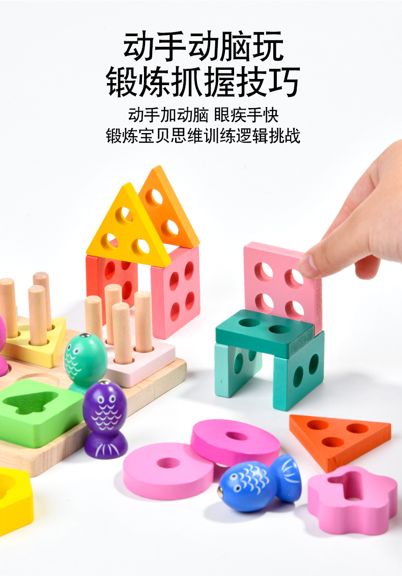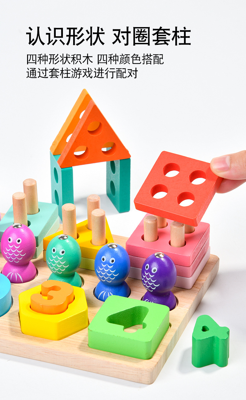 국경 아기 조기 교육 다기능 모양 일치하는 건물 블록 어린이 세트 칼럼 자기 낚시 부모-어린이 나무 장난감스토어 가기