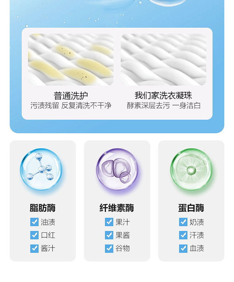 OEM 맞춤형 국경 간 세탁 비드 소스 공장 4-in-1 항균 및 진드기 제거 다중 효과 농축 효소 세탁 비드