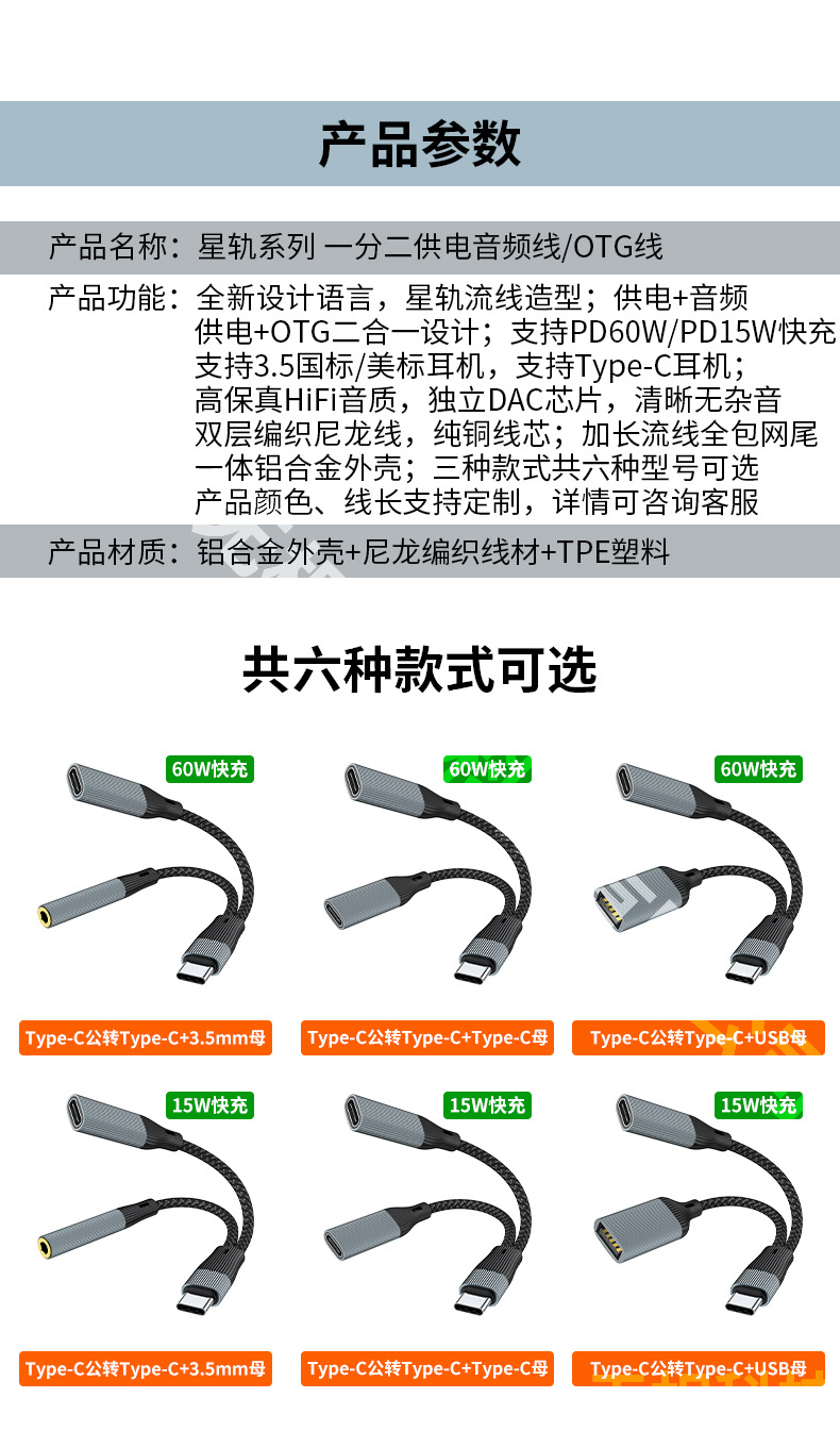 아마존 1-2 전원 공급 장치 OTG 오디오 케이블 Type-C-3.5mm 2 대 1 어댑터 충전 PD60W스토어 가기