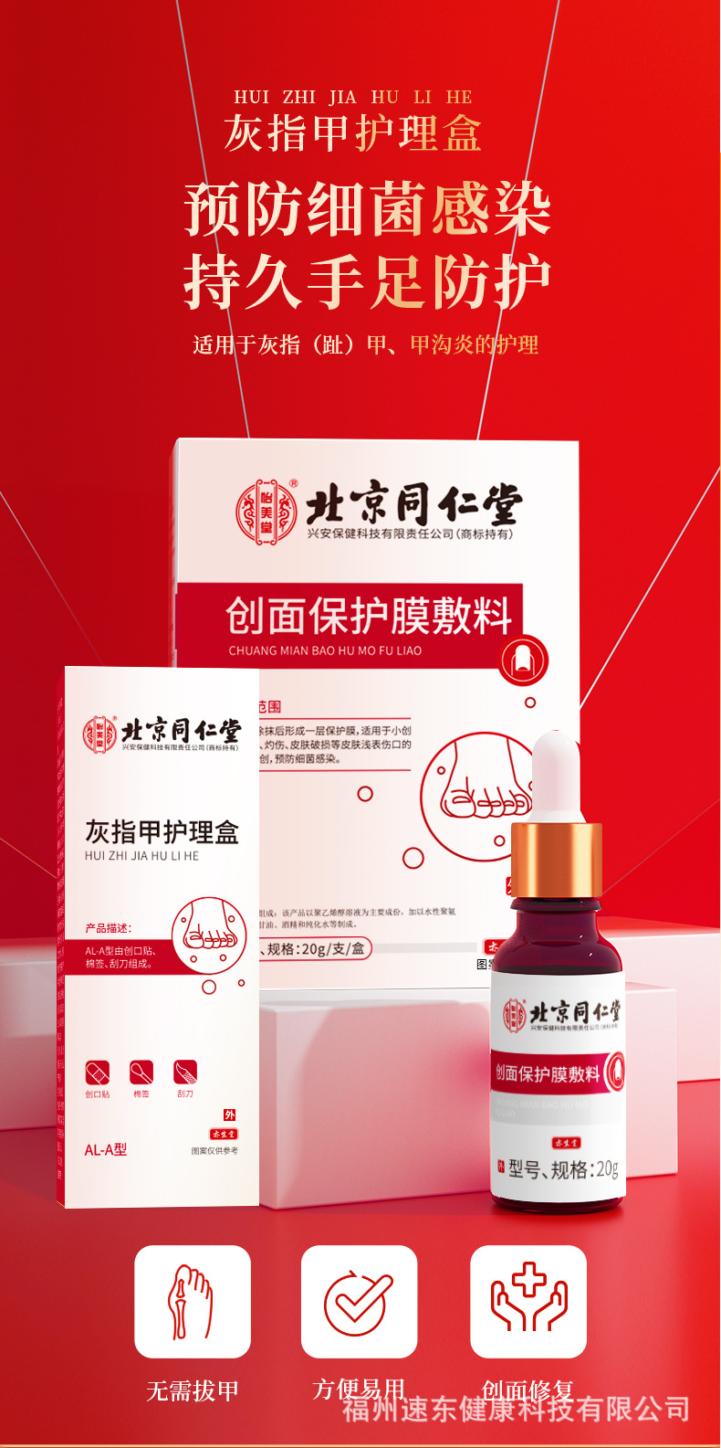 베이징 Tongrentang 상처 보호 보호 필름 드레싱 Onychomycosis 네일 케어 박스 세트 스크랩 화상 피부 관리