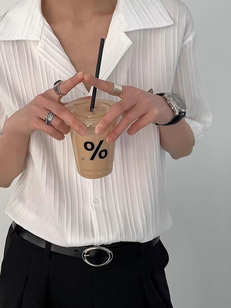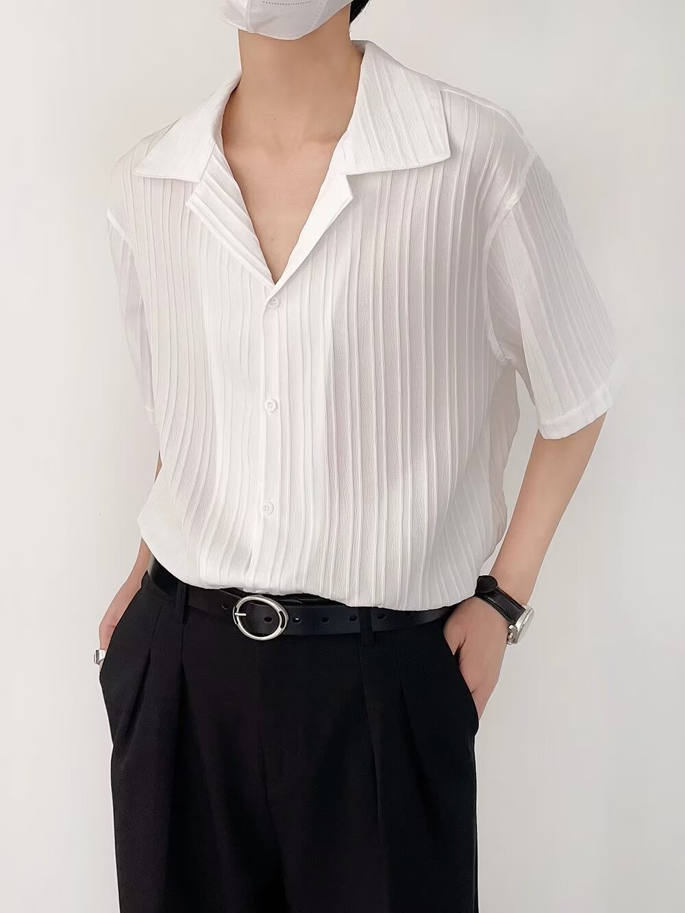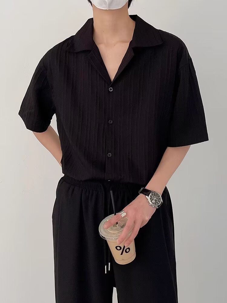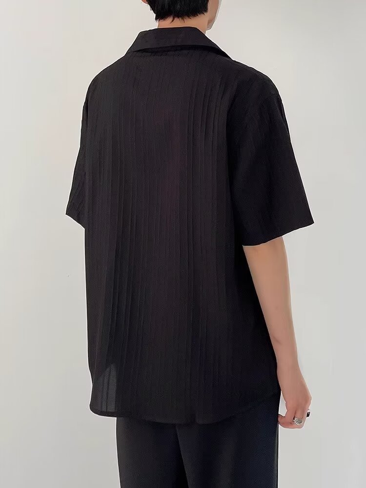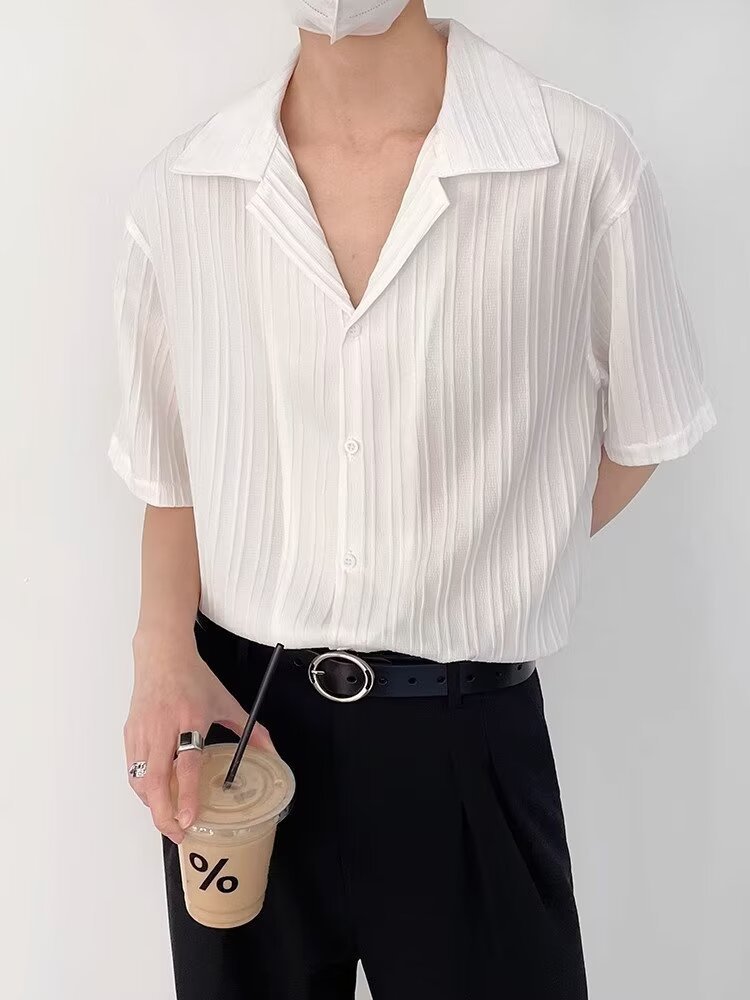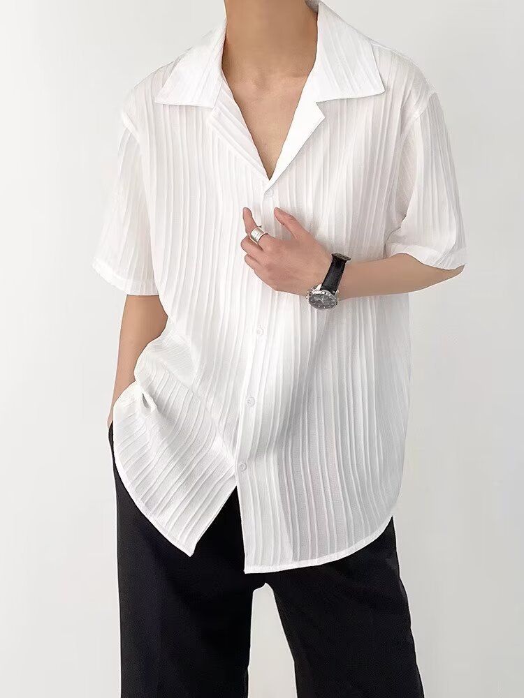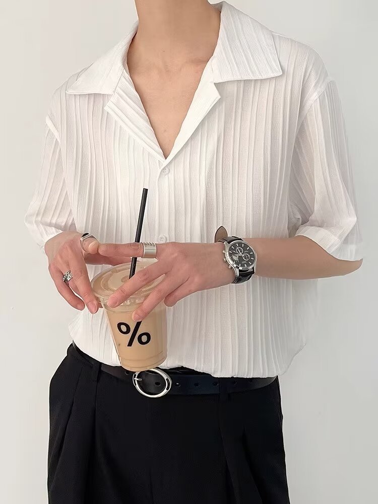 2024 레트로 셔츠 남자 여름 홍콩 스타일 학생 느슨한 틈새 디자인 감각 재미있는 새로운 남성 탑