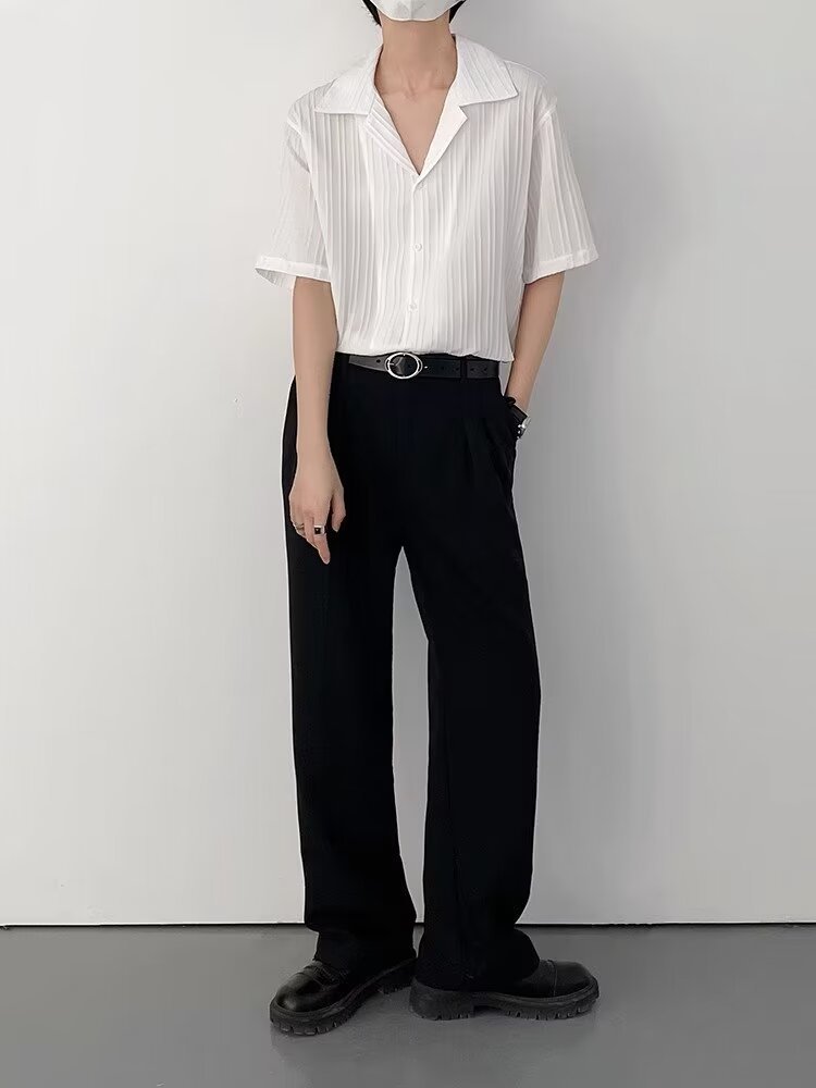 2024 레트로 셔츠 남자 여름 홍콩 스타일 학생 느슨한 틈새 디자인 감각 재미있는 새로운 남성 탑스토어 가기