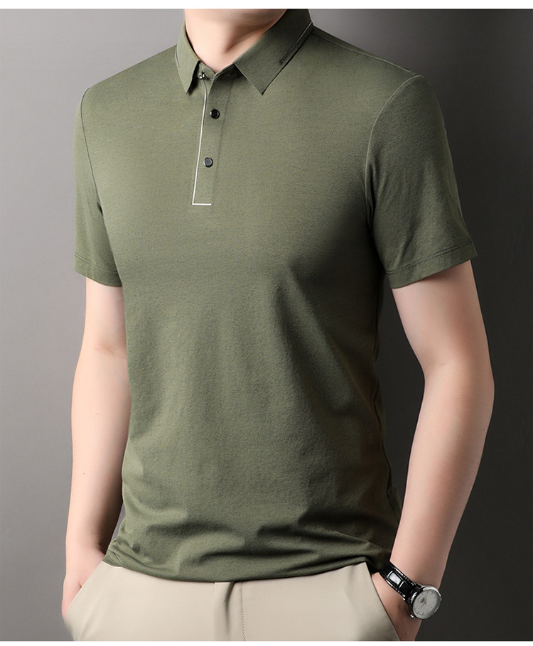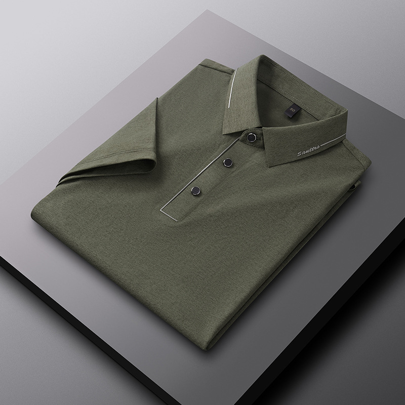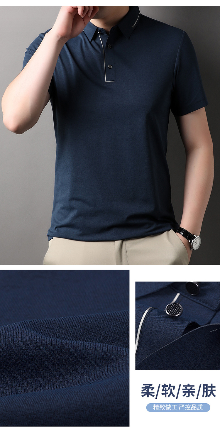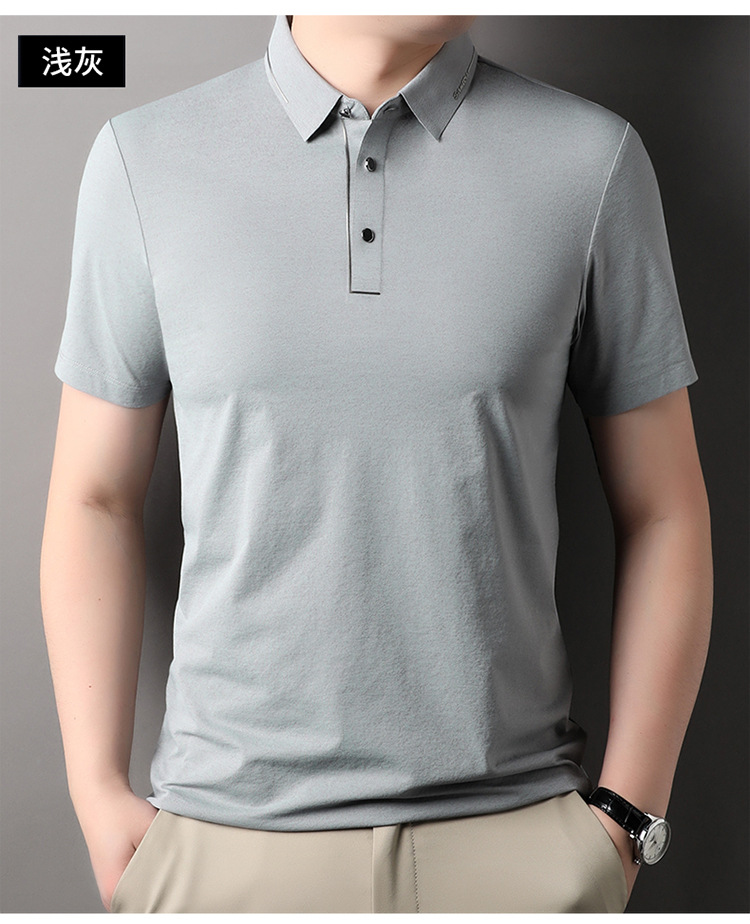 여름 새로운 남성 반팔 폴로 셔츠 중년 비즈니스 캐주얼 솔리드 컬러 라 남성용 부드러운 피부 친화적 인 통기성 티셔츠