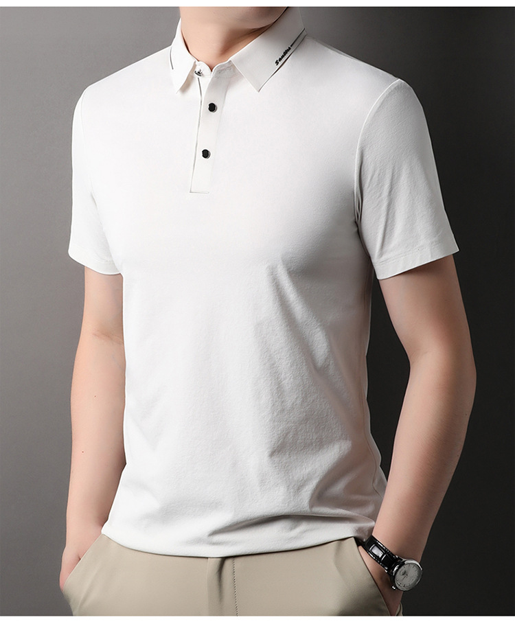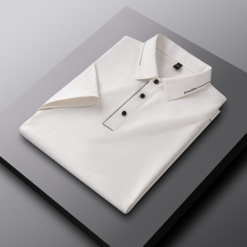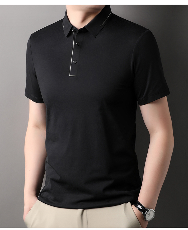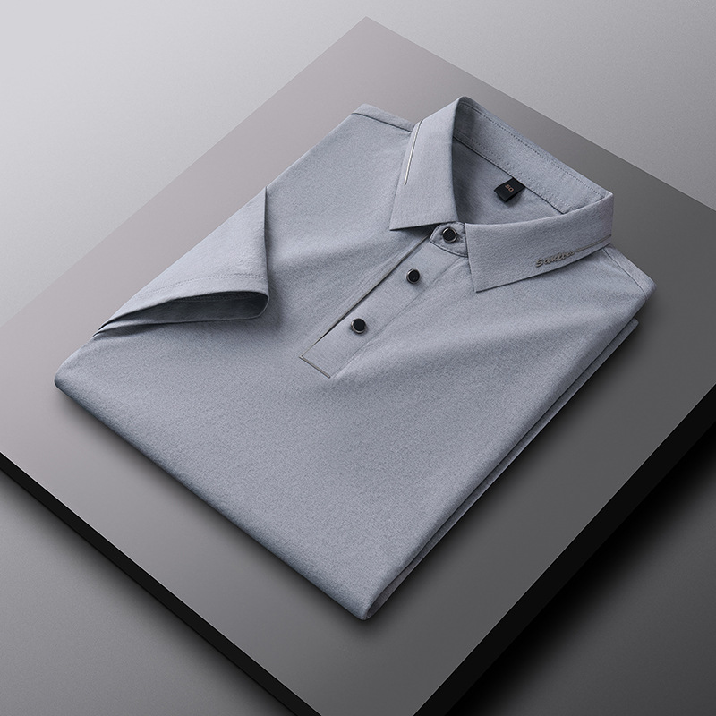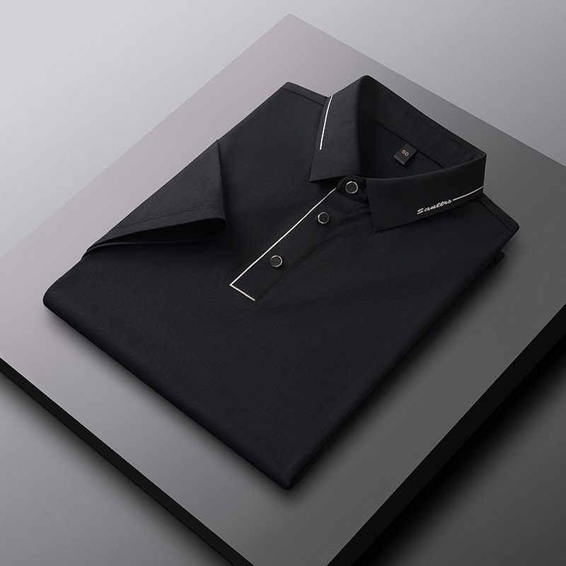 여름 새로운 남성 반팔 폴로 셔츠 중년 비즈니스 캐주얼 솔리드 컬러 라 남성용 부드러운 피부 친화적 인 통기성 티셔츠