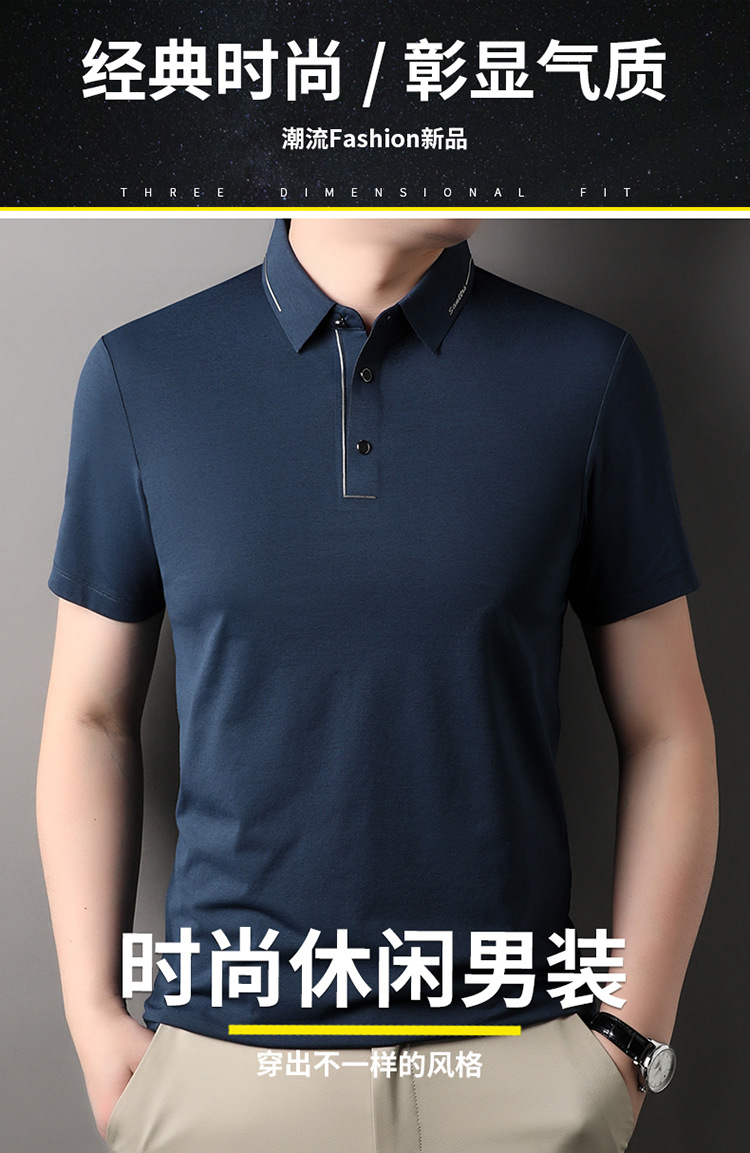 여름 새로운 남성 반팔 폴로 셔츠 중년 비즈니스 캐주얼 솔리드 컬러 라 남성용 부드러운 피부 친화적 인 통기성 티셔츠스토어 가기