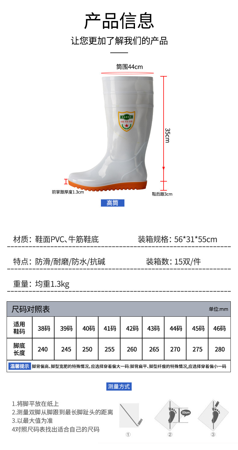 흰 비 부츠 음식 작업 장화 비 슬립 하이 튜브 위생 부츠 내유성 산 및 알칼리성 요리사 물 신발 노동 보호 신발스토어 가기