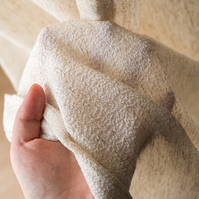 봄 차 프랑스 복고풍 린넨 원사 투명 불투명 창 스크린 거실 발코니 침실 와비사비 스타일 면 및 린넨 원사 커튼스토어 가기