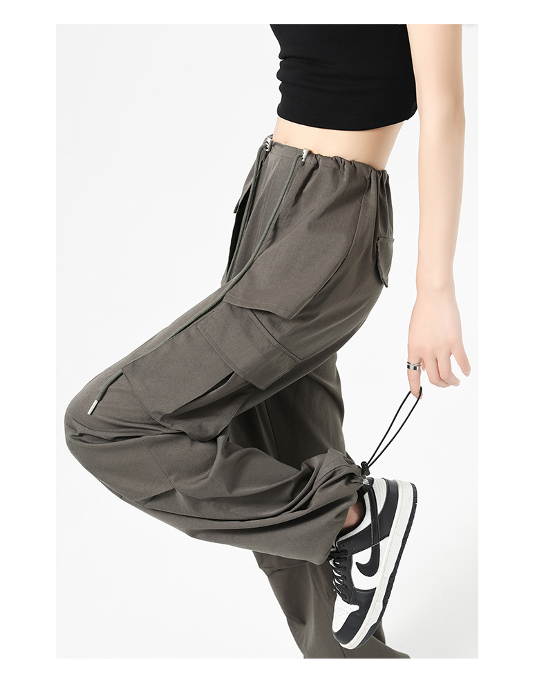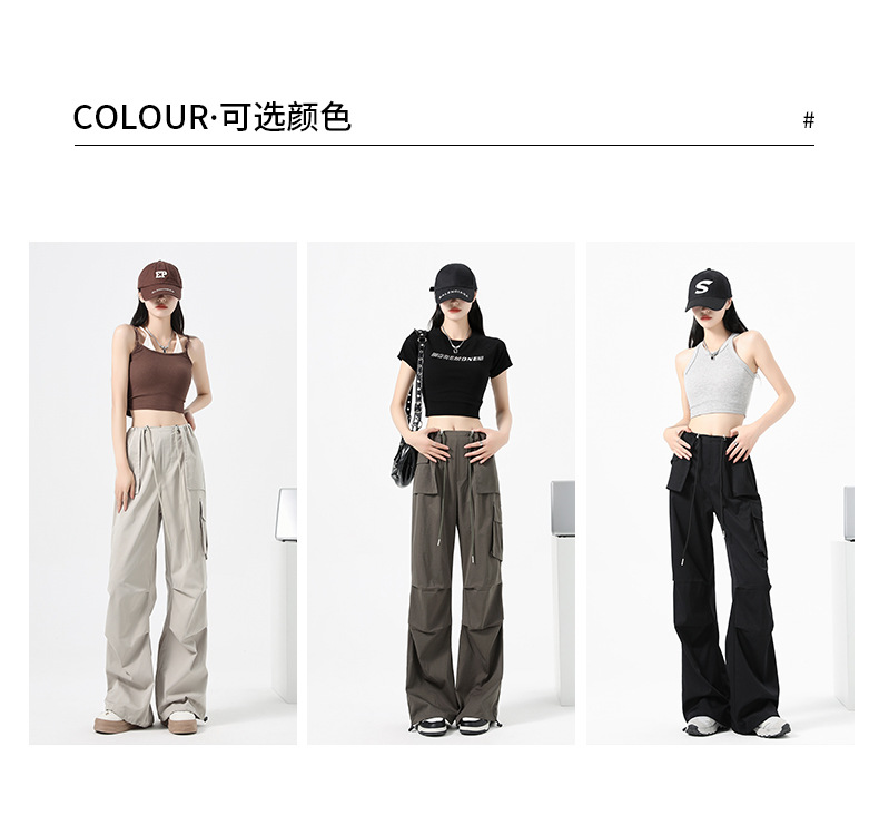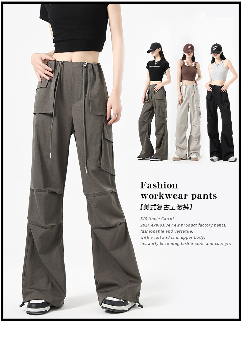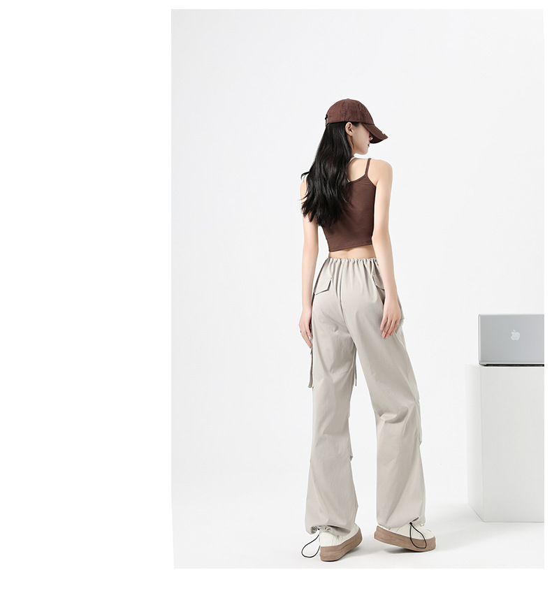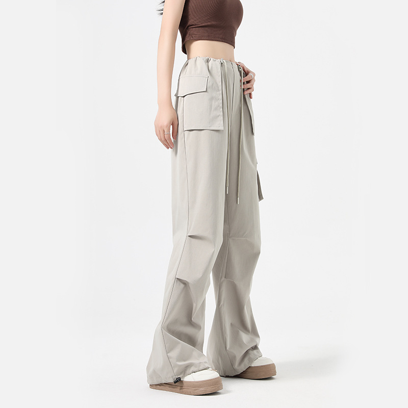 2026 봄/여름 아메리칸 스타일 워크웨어 팬츠, 루즈핏 와이드 레그 낙하산 바지, 경량 캐주얼 속건 스포츠 팬츠 여성용스토어 가기