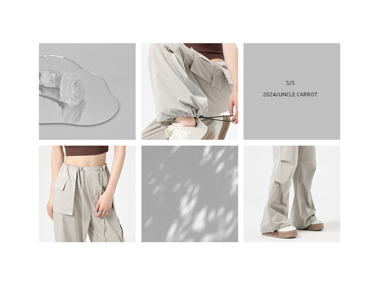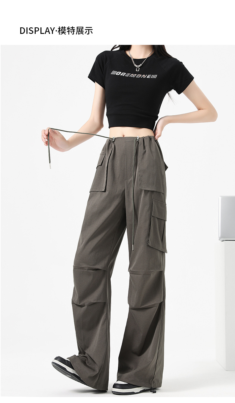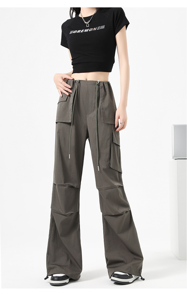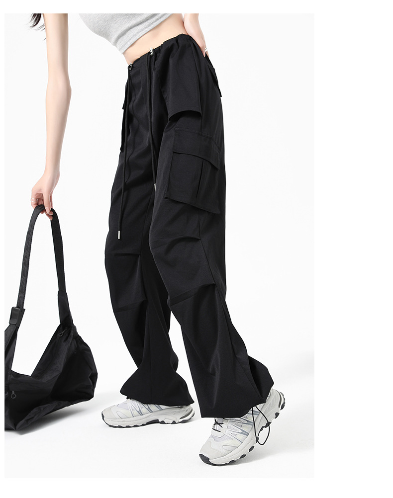 2026 봄/여름 아메리칸 스타일 워크웨어 팬츠, 루즈핏 와이드 레그 낙하산 바지, 경량 캐주얼 속건 스포츠 팬츠 여성용스토어 가기
