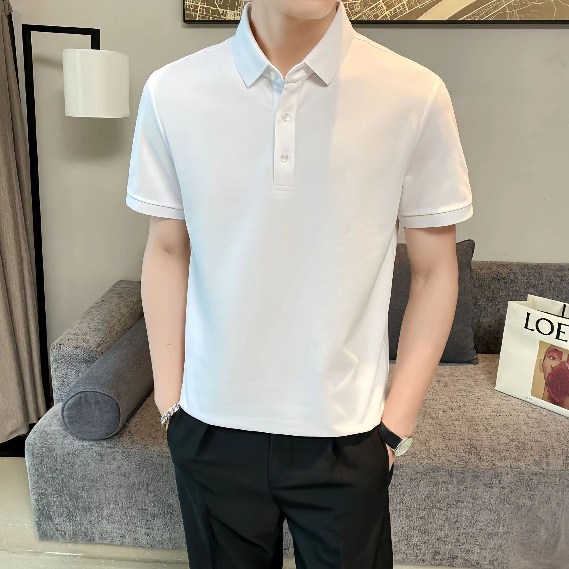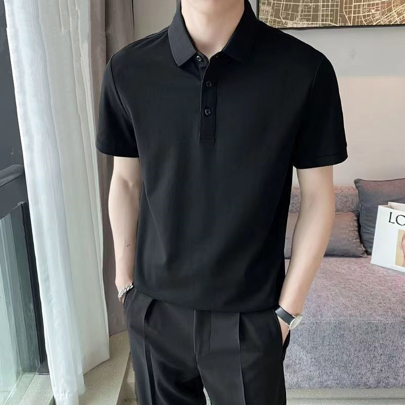 여름 새로운 하이 엔드 솔리드 밀크 실크 구슬 폴로 셔츠 남성 Led 슬림 룩 유행 얇은 반팔 티셔츠