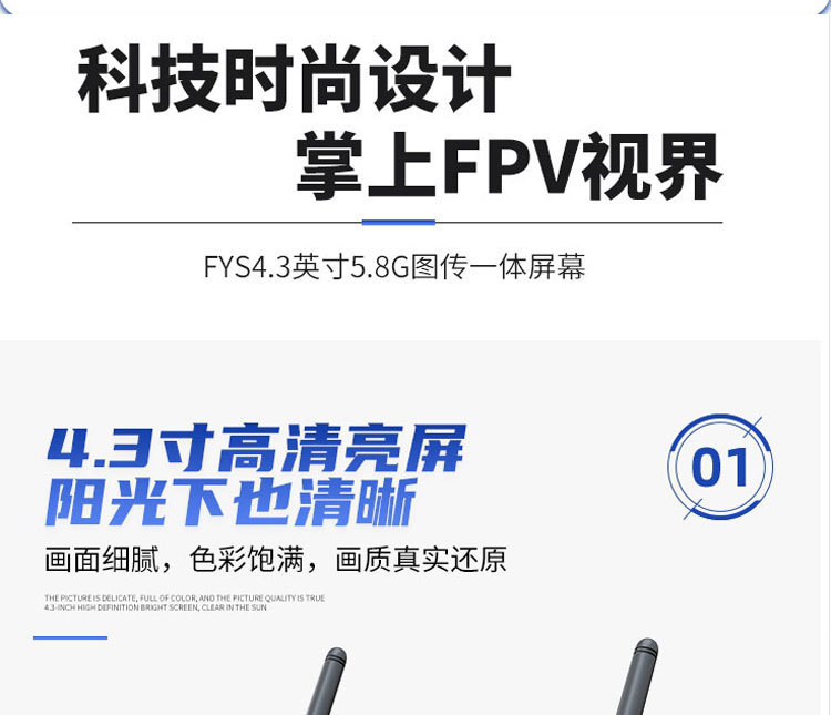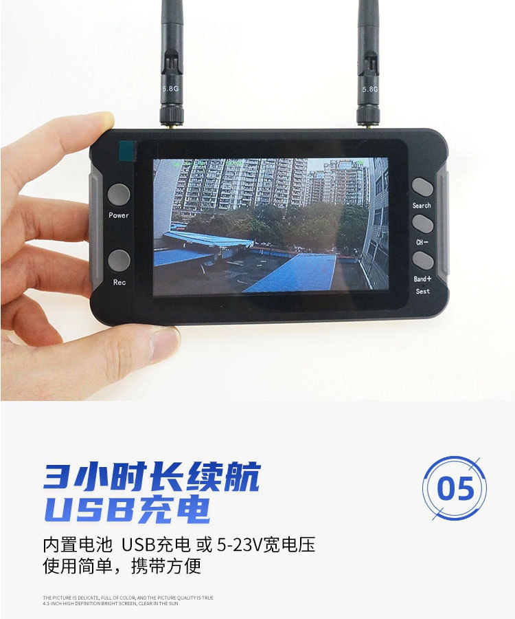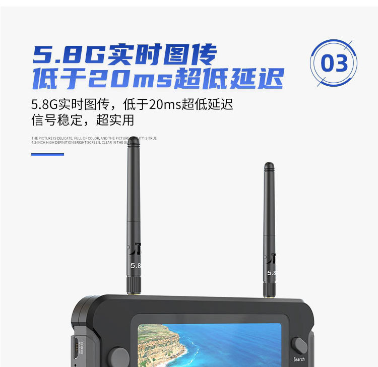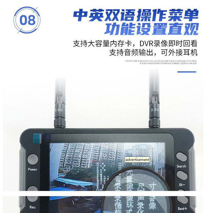 霸王屏4.3寸 5.8G一体图传接收DVR录像模型FPV航拍穿越机显示器