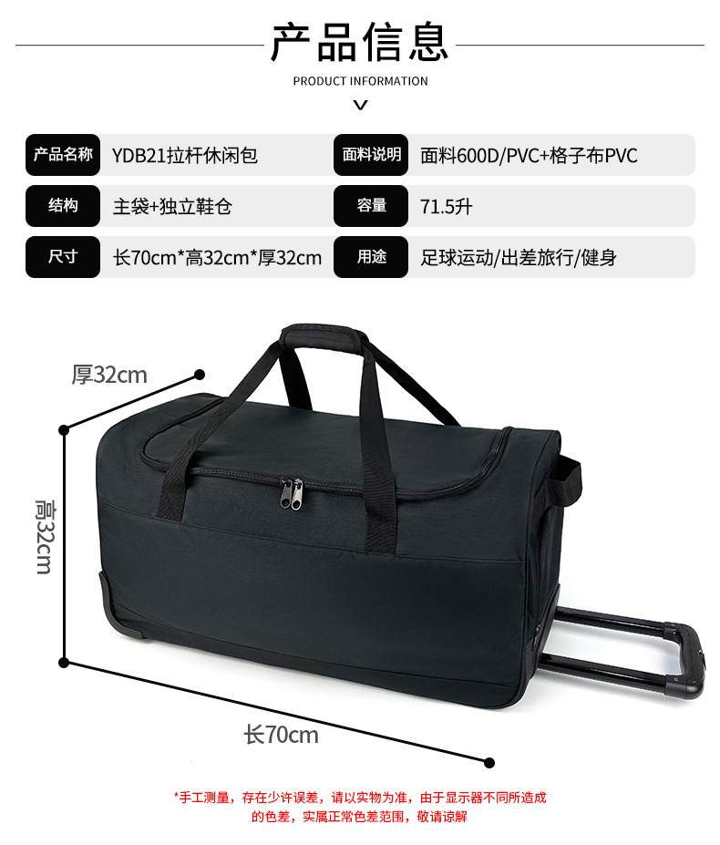 대용량 트롤리 가방 옥스포드 천 게으른 여행 가방 남녀 축구 스포츠 훈련 보관 수하물 가방