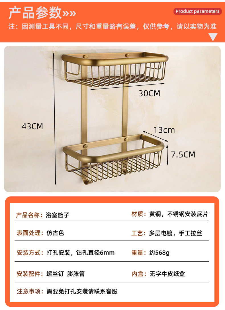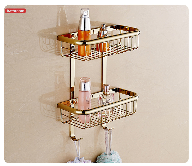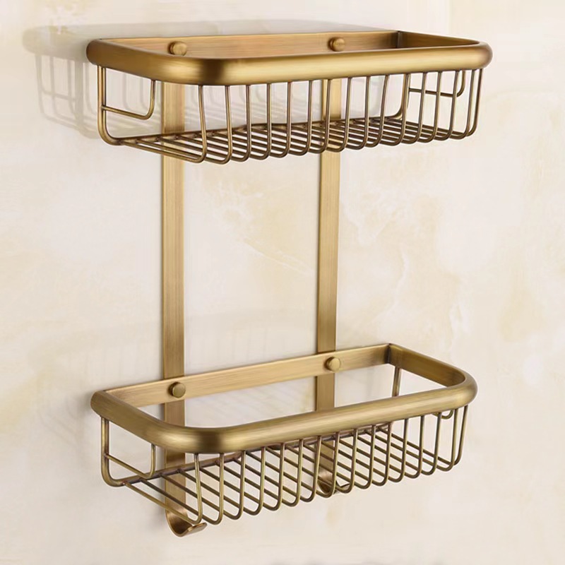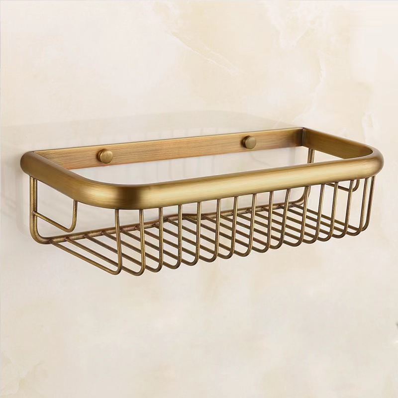 황동 유럽식 욕실 수납 선반 장식품 사각 바구니 앤티크 스타일 욕실 수납 선반 욕실 메쉬 바구니 코너 선반스토어 가기