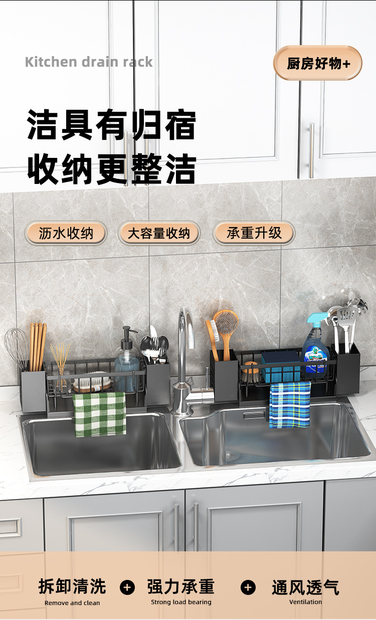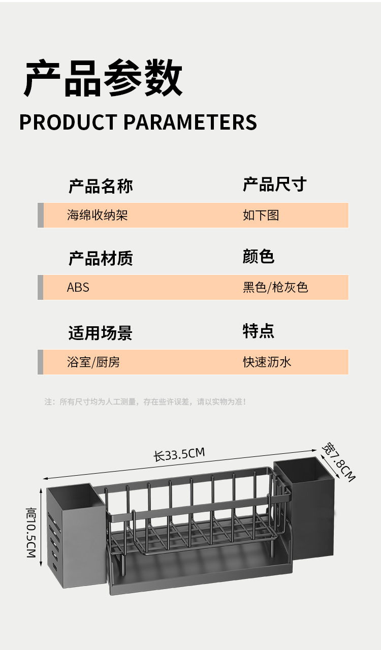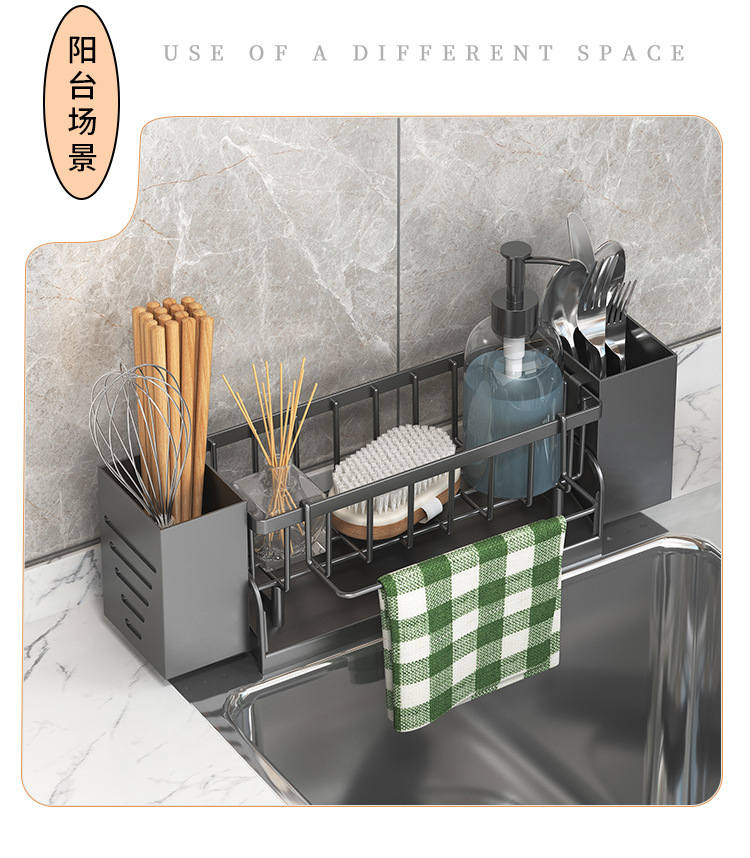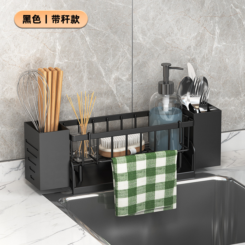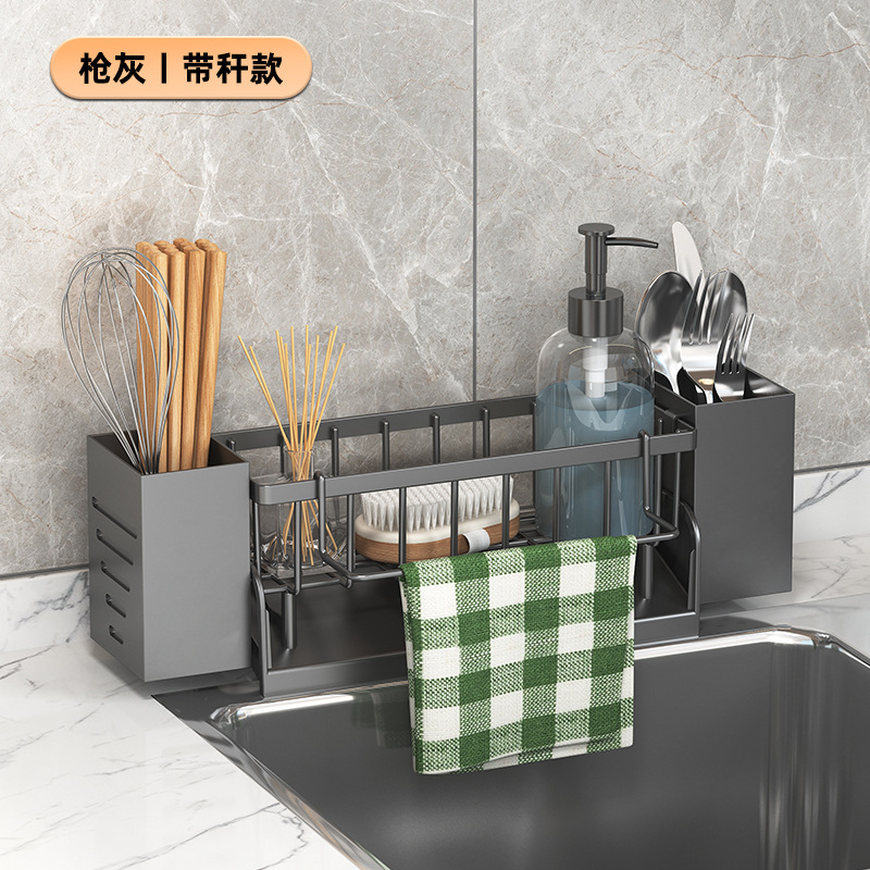 국경 간 주방 보관 랙 자동 배수 팁 클로스 랙 카운터 탑 젓가락 나이프와 포크 카트리지가있는 다기능 스폰지 랙