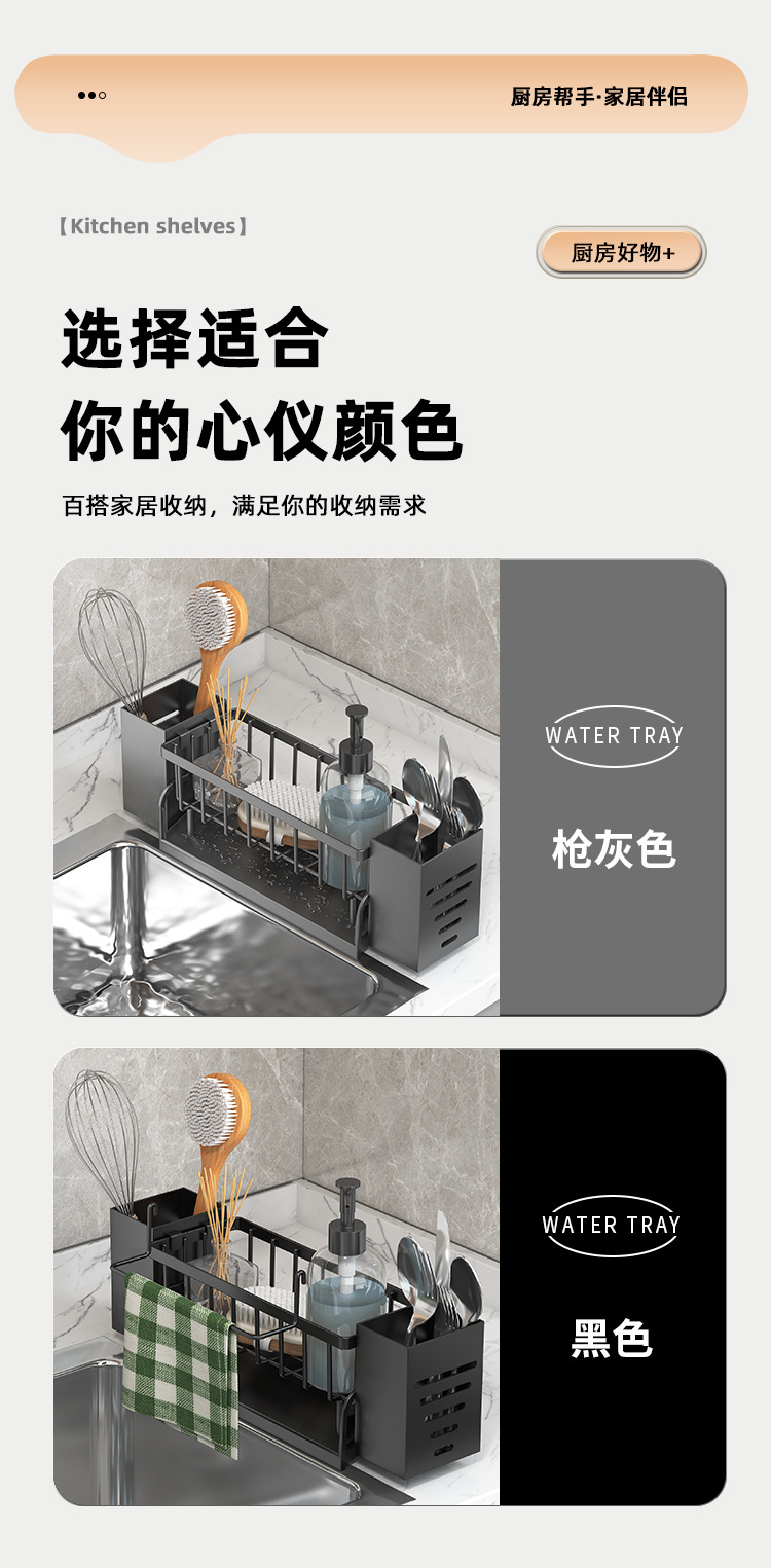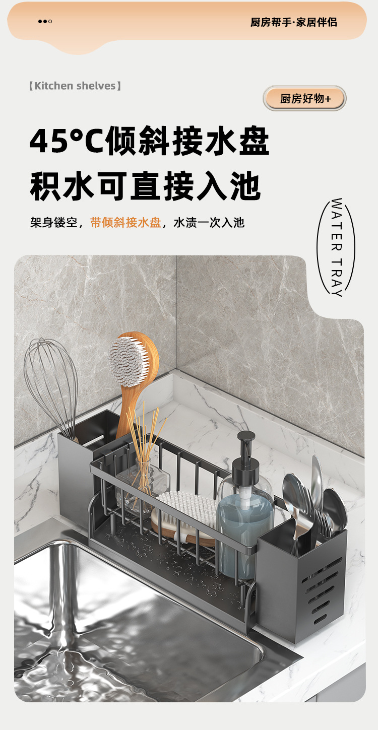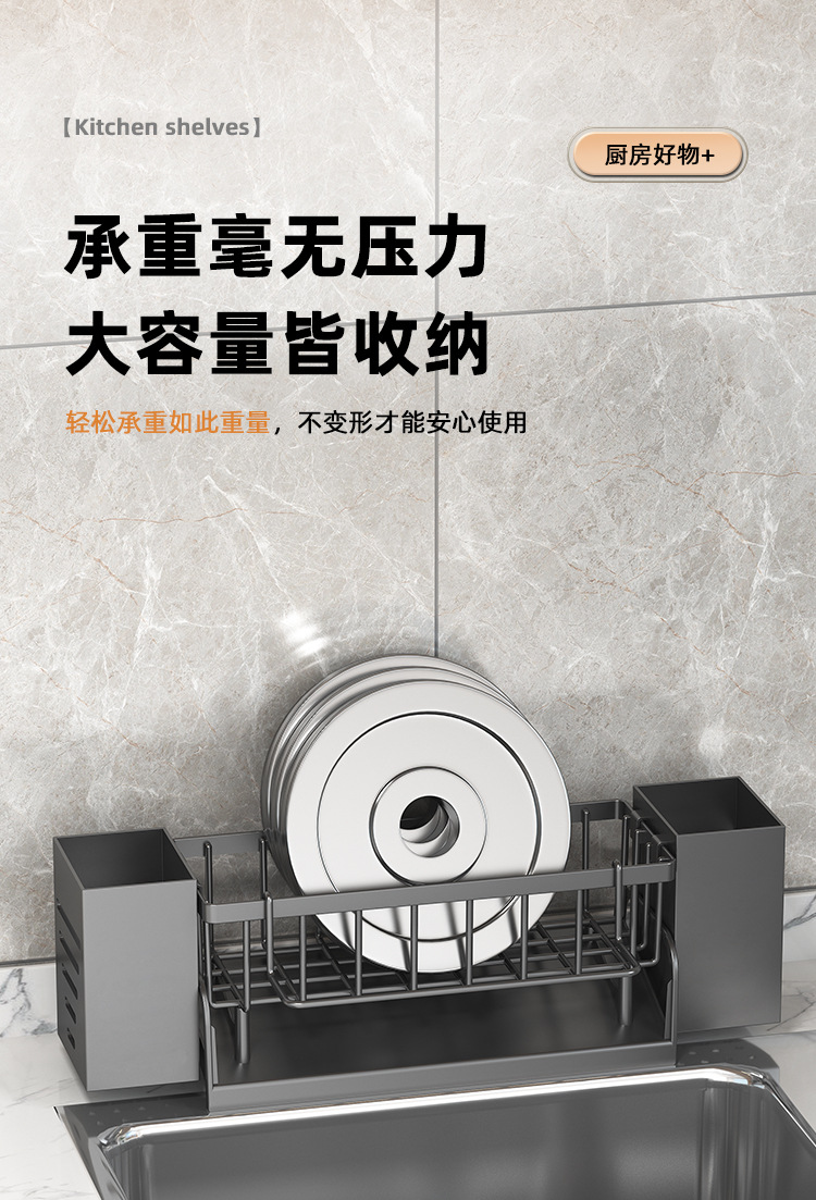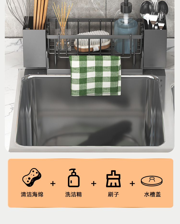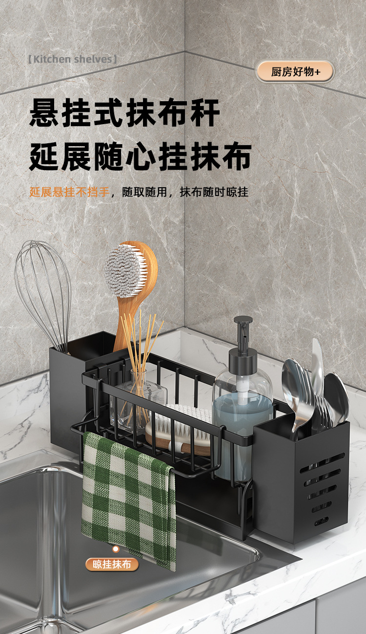 국경 간 주방 보관 랙 자동 배수 팁 클로스 랙 카운터 탑 젓가락 나이프와 포크 카트리지가있는 다기능 스폰지 랙