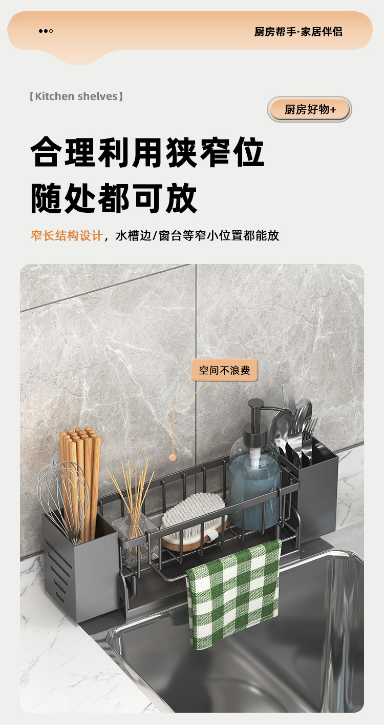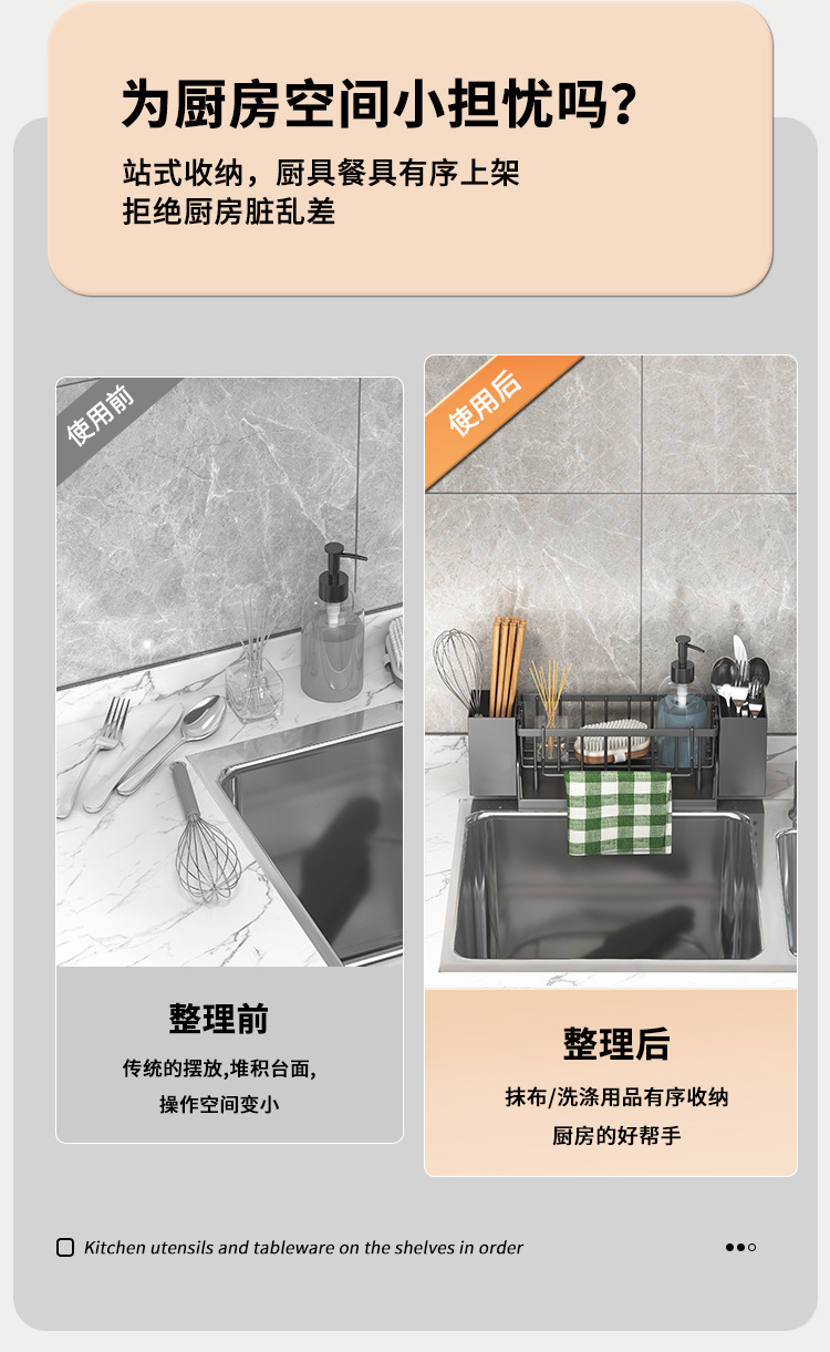 국경 간 주방 보관 랙 자동 배수 팁 클로스 랙 카운터 탑 젓가락 나이프와 포크 카트리지가있는 다기능 스폰지 랙스토어 가기
