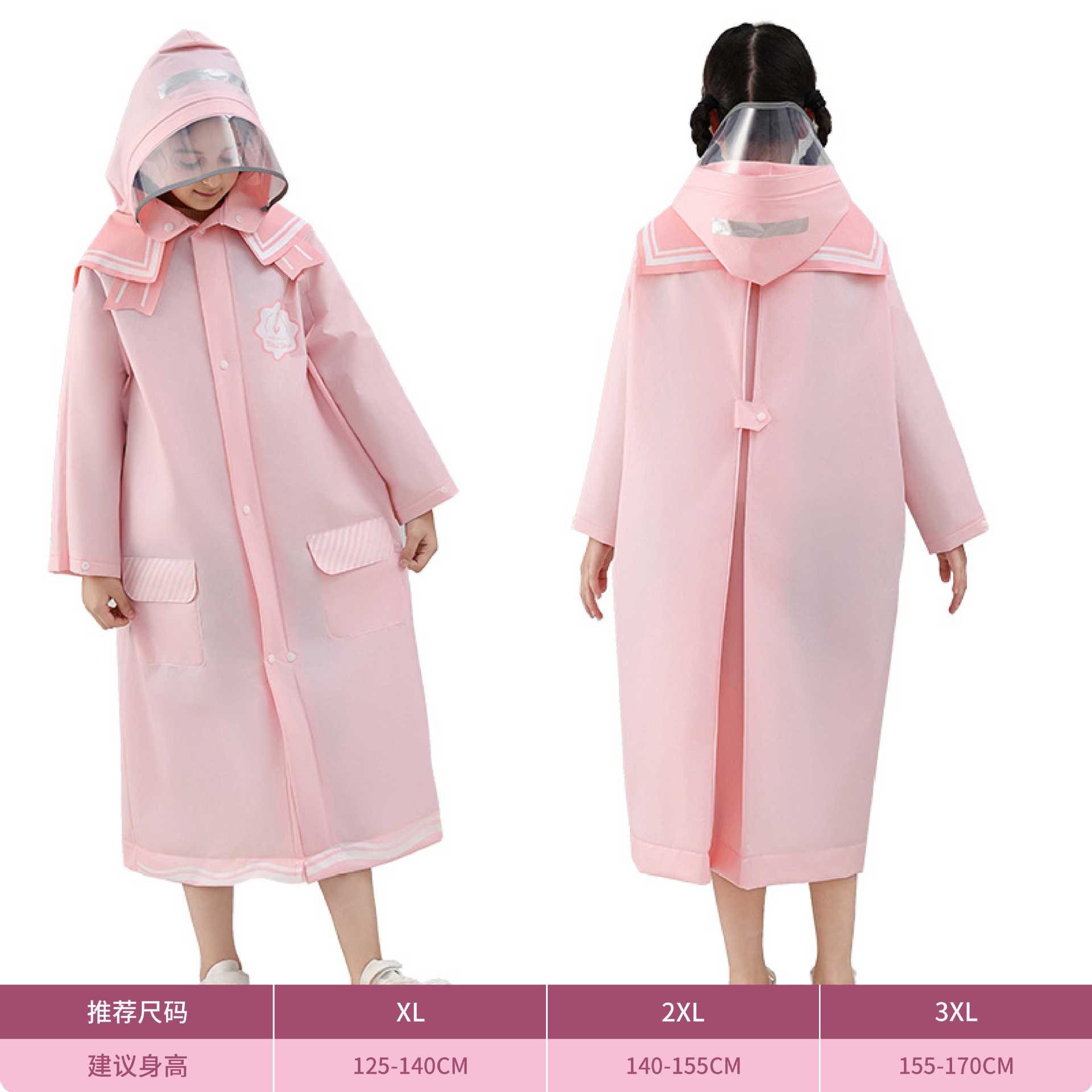 밍지아 EVA 아동용 우비, 세련된 네이비 스타일의 일체형, 책가방 수납공간 포함, 초등학생 및 어린이용 두꺼운 우비