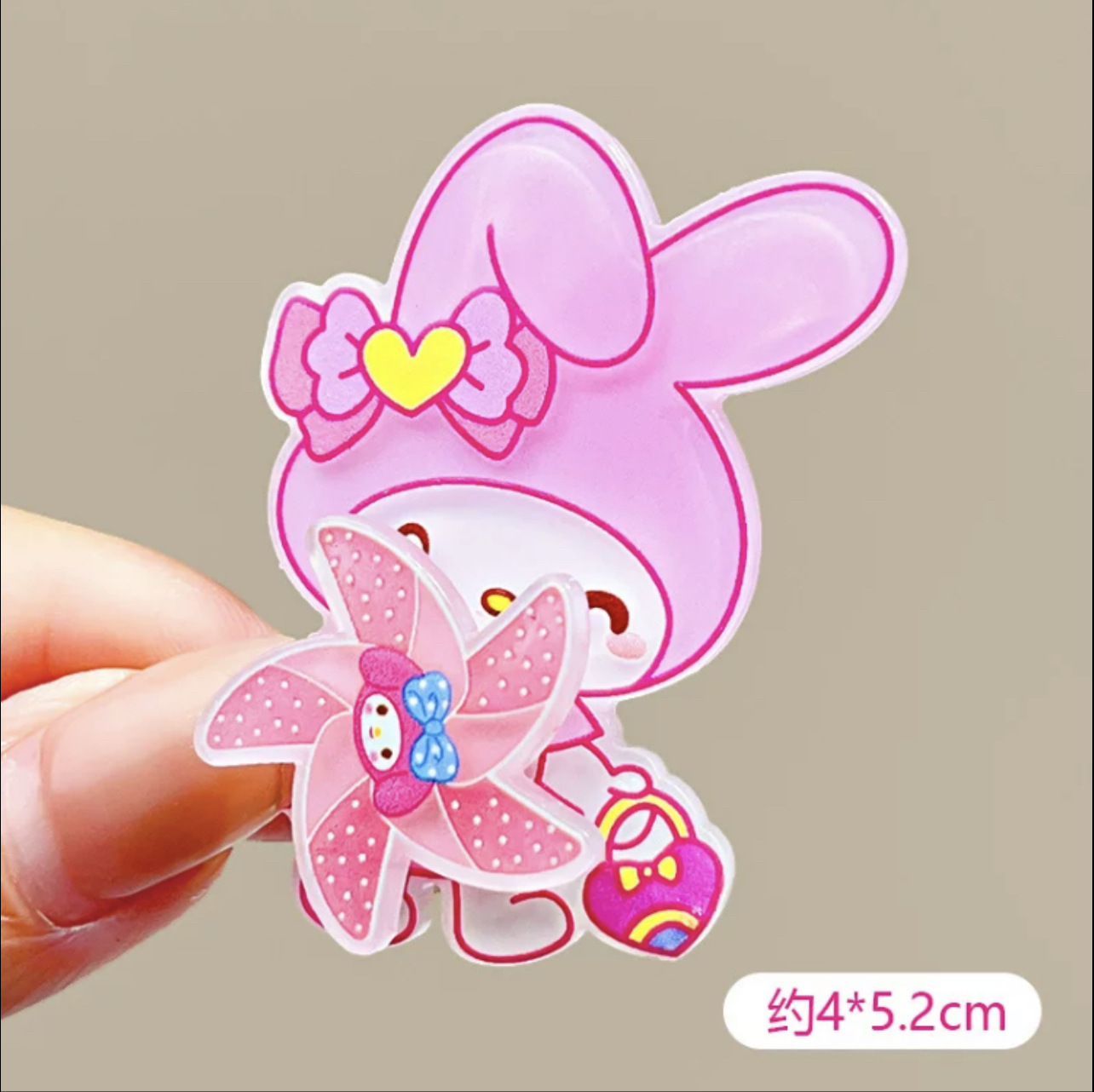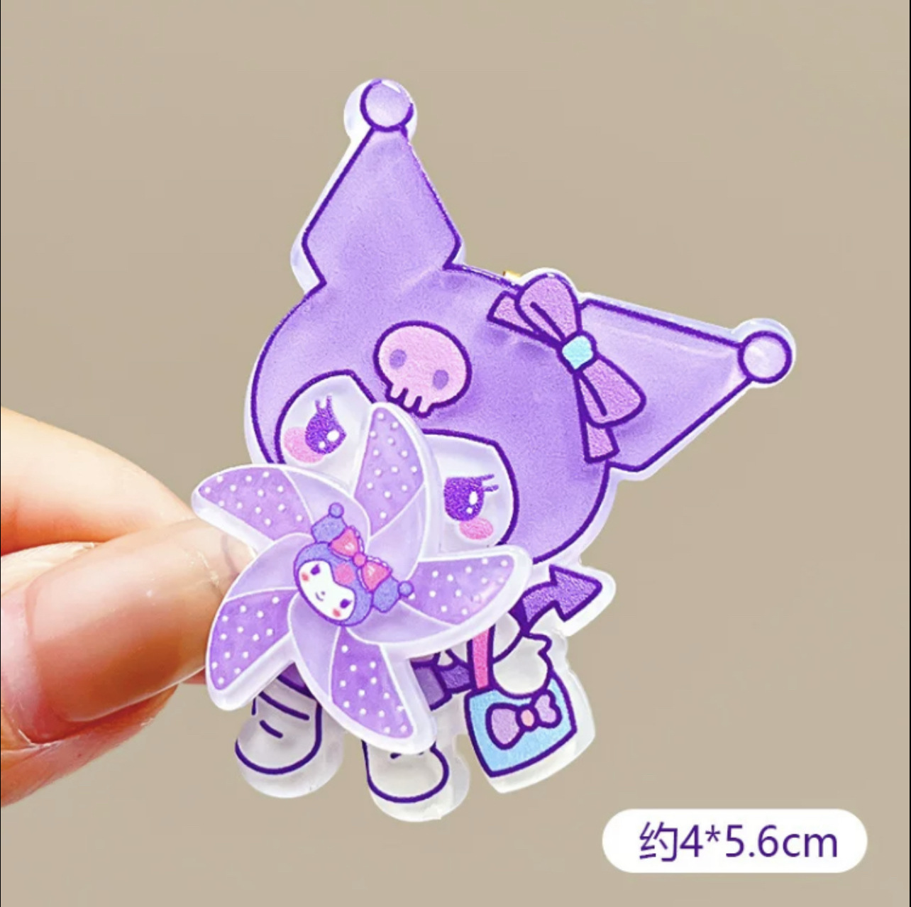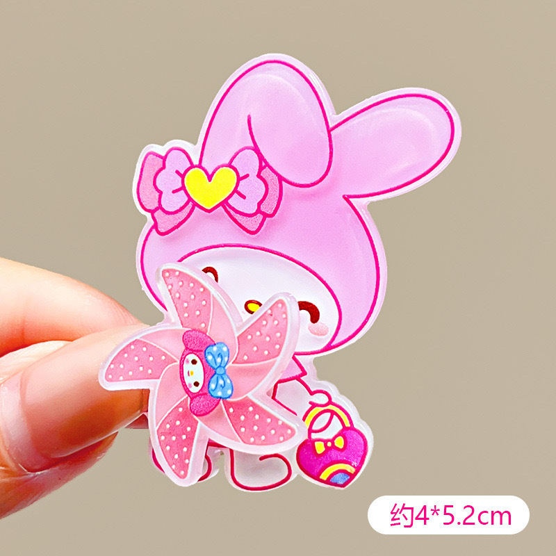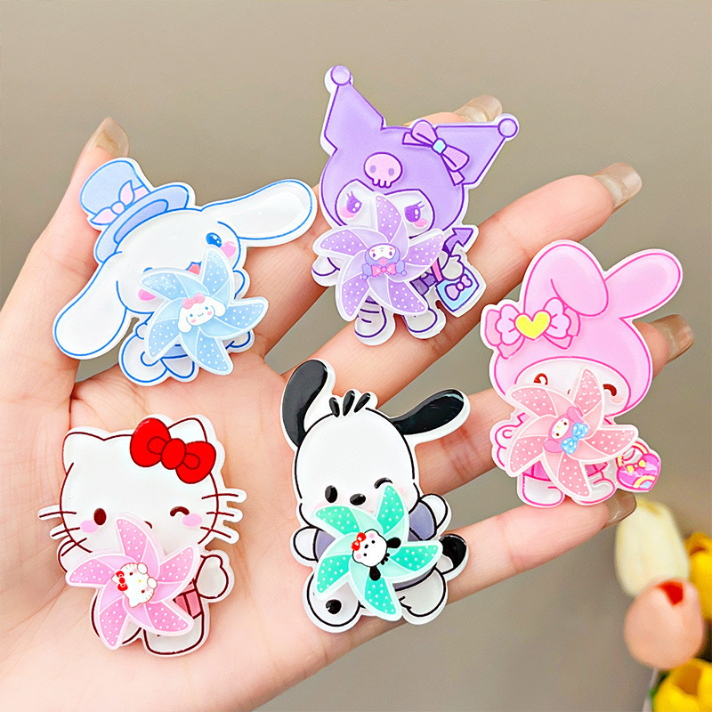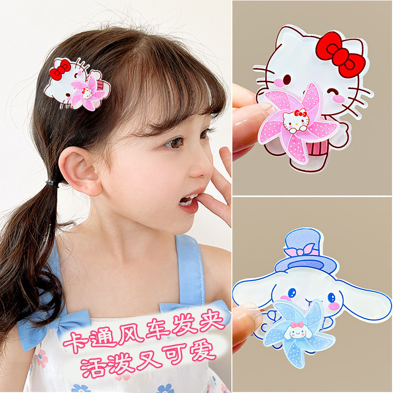 회전 풍차 어린이 머리핀 만화 귀여운 산리오 아크릴 소녀 하트 사이드 앞머리 깨진 헤어 클립스토어 가기