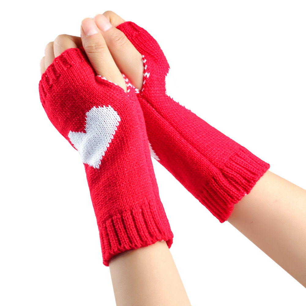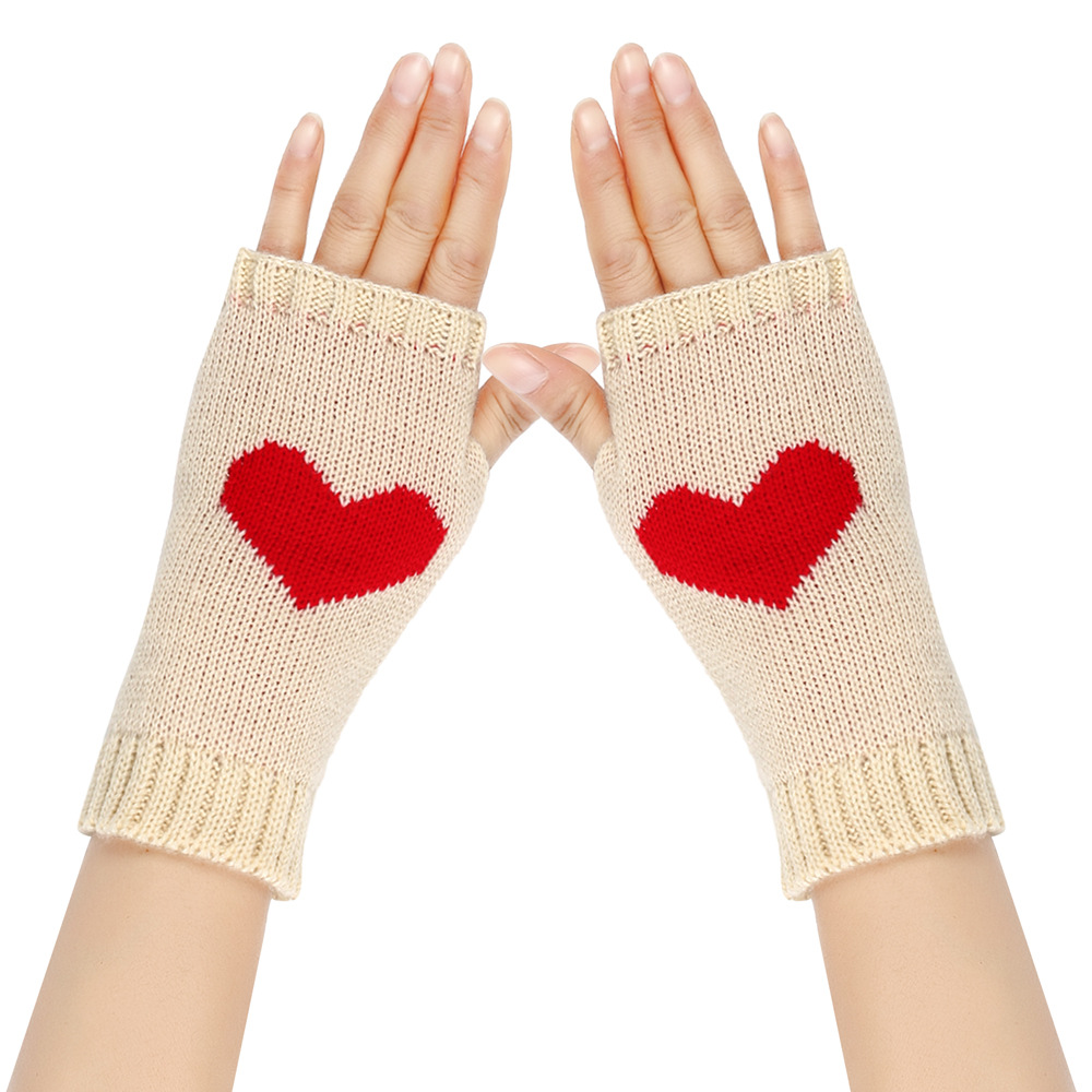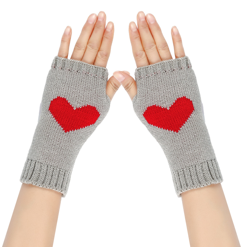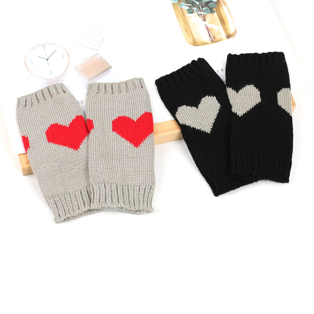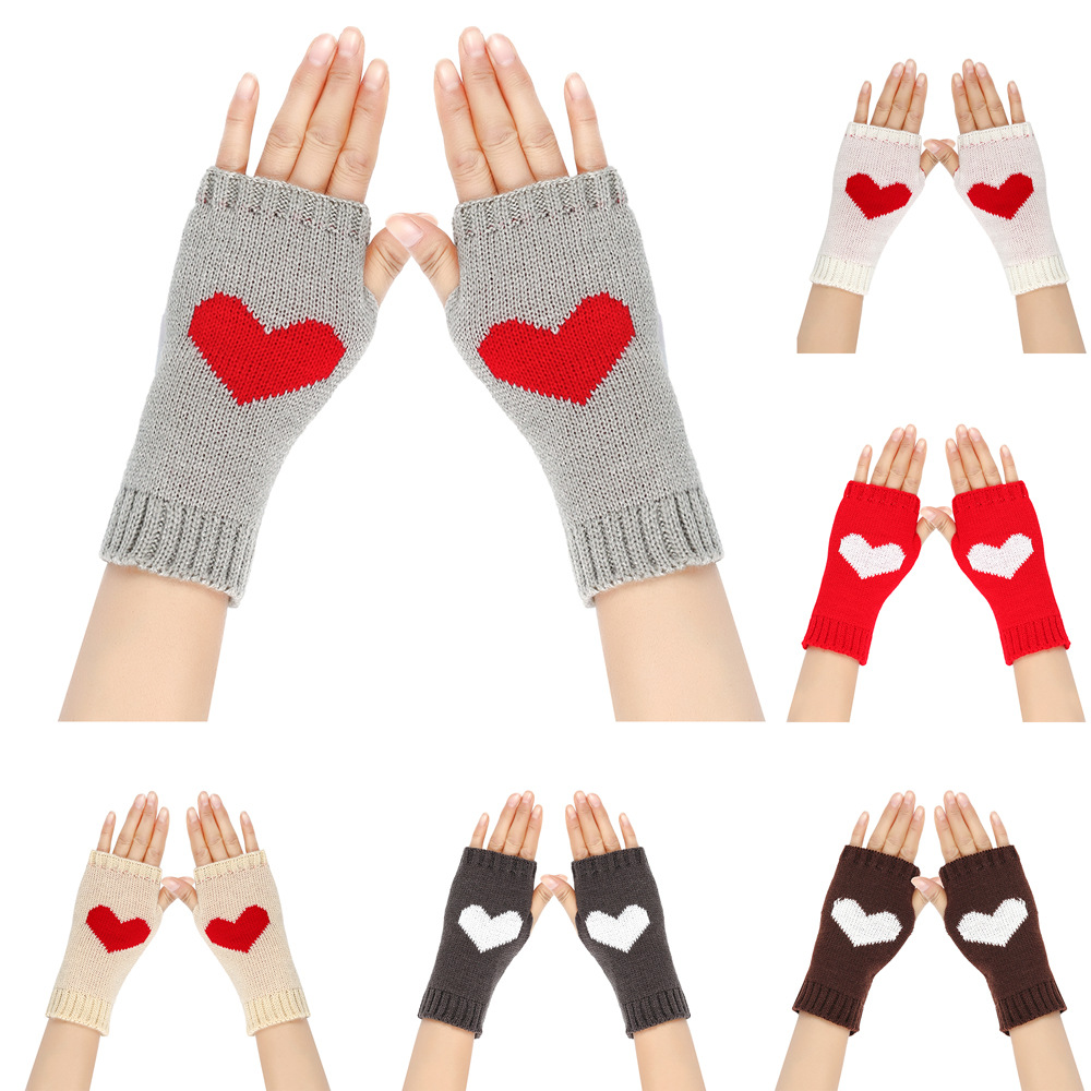 국경 짧은 반 손가락 니트 장갑 학생 사무실 입력 복숭아 심장 소매 양모 따뜻한 사랑 장갑스토어 가기