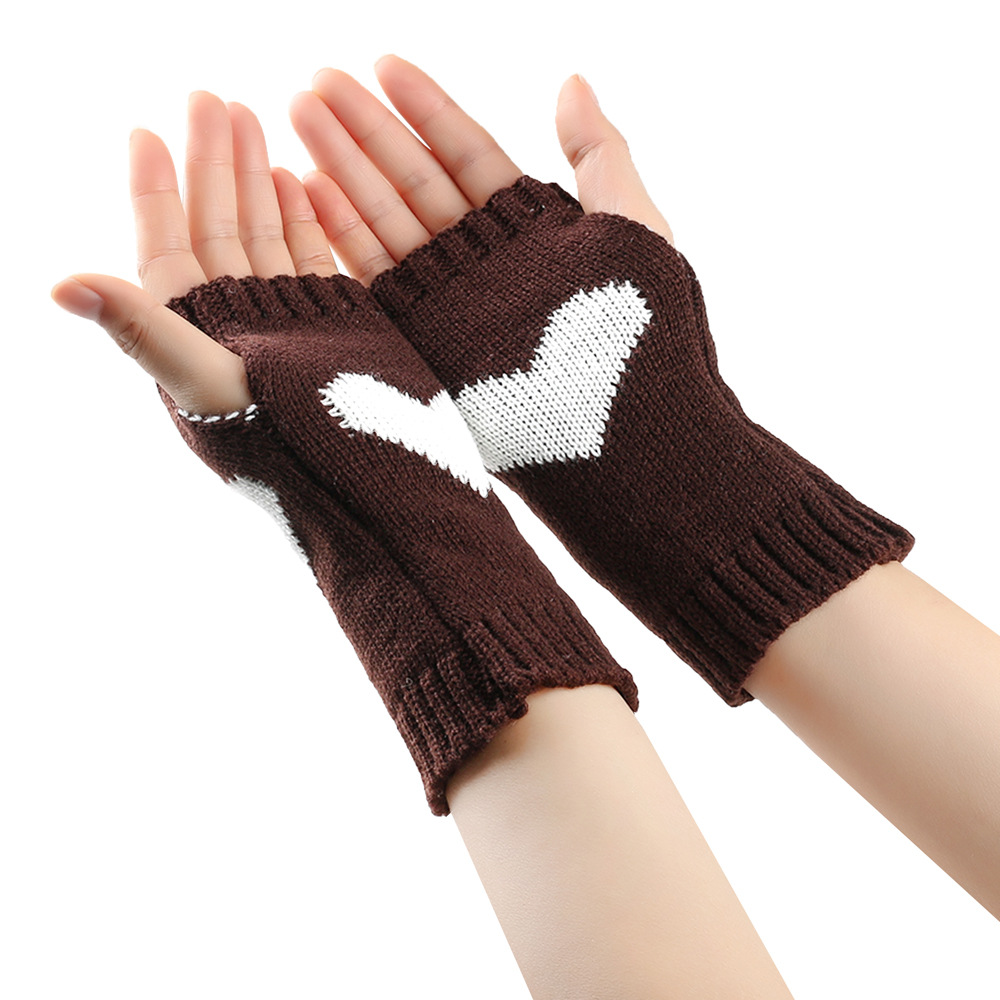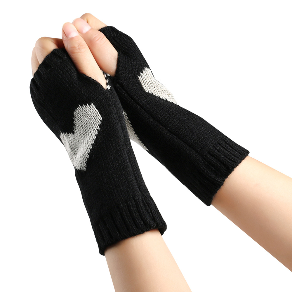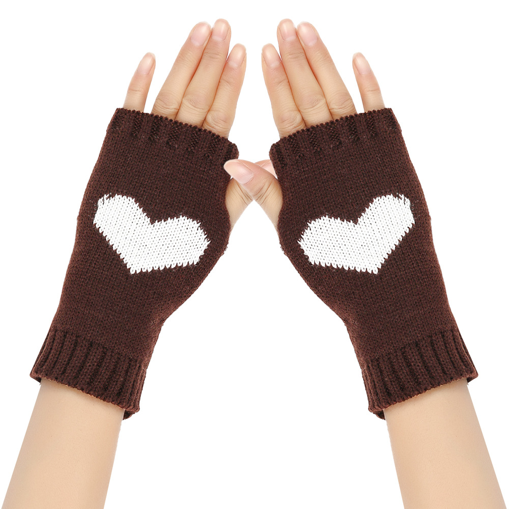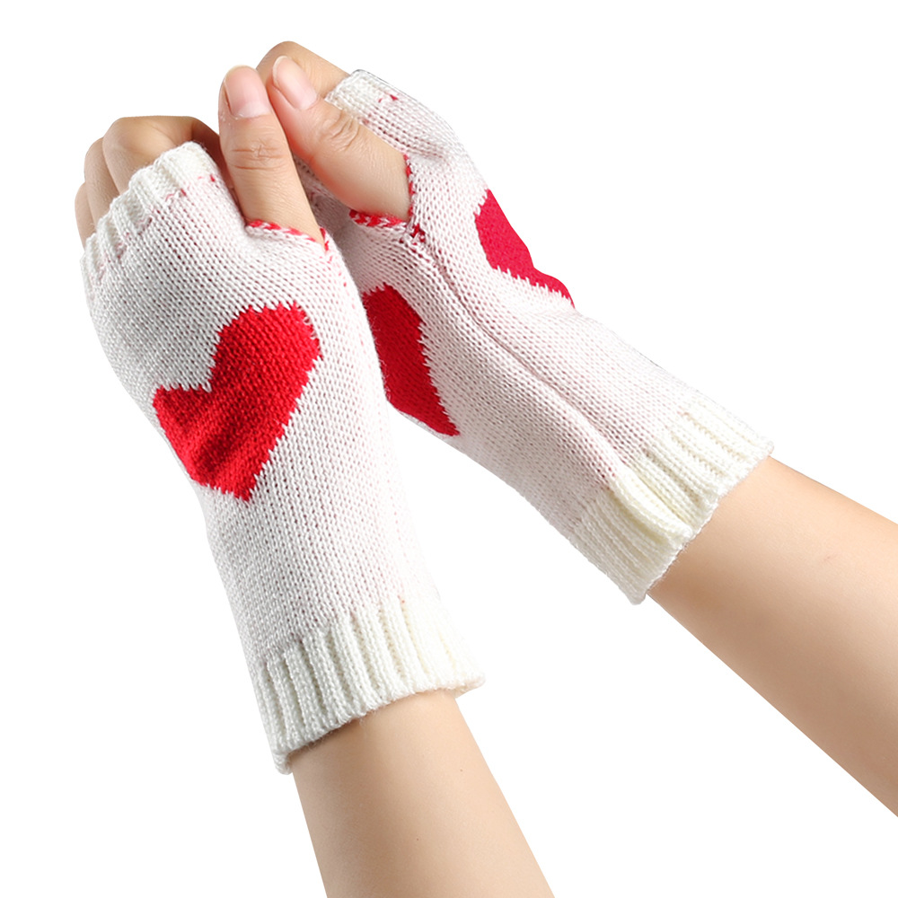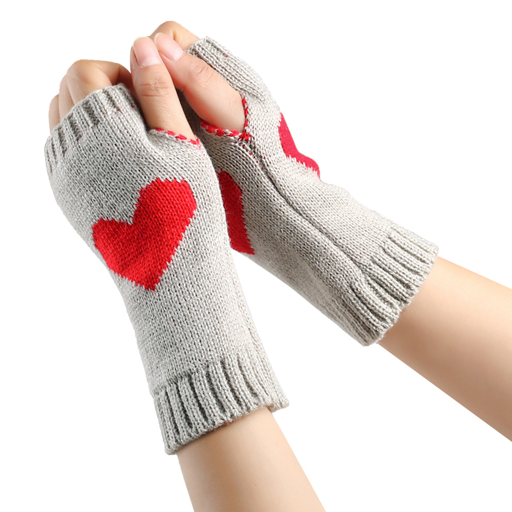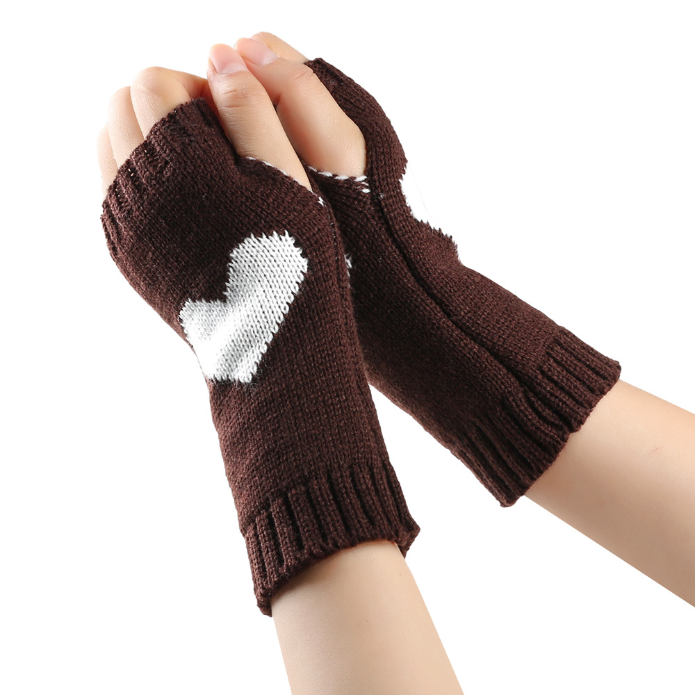 국경 짧은 반 손가락 니트 장갑 학생 사무실 입력 복숭아 심장 소매 양모 따뜻한 사랑 장갑스토어 가기